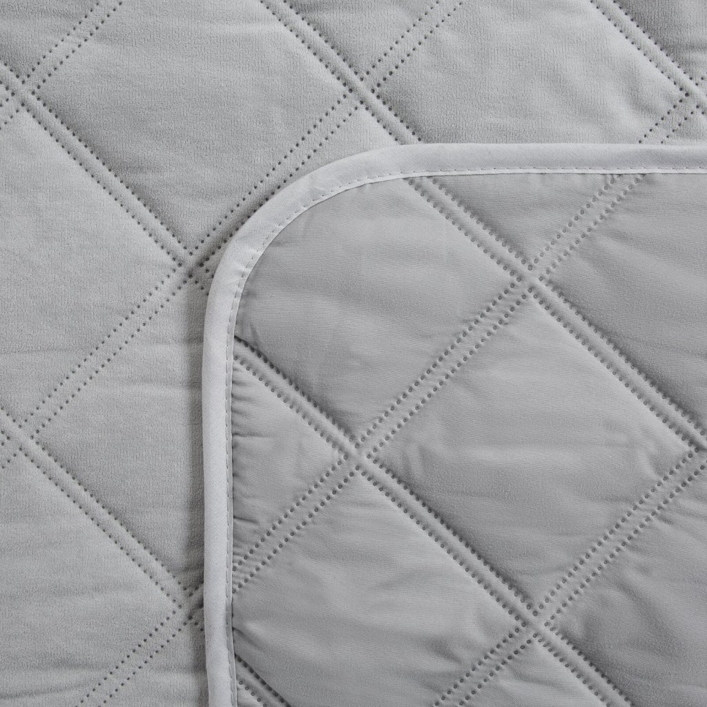 Jednobarevný přehoz na postel vyrobený technikou hot press, šířka: 170 cm, délka: 210 cm, barva: stříbrná, hmotnost: 85 GSM, složení: 100% polyester.Doplňkové parametry