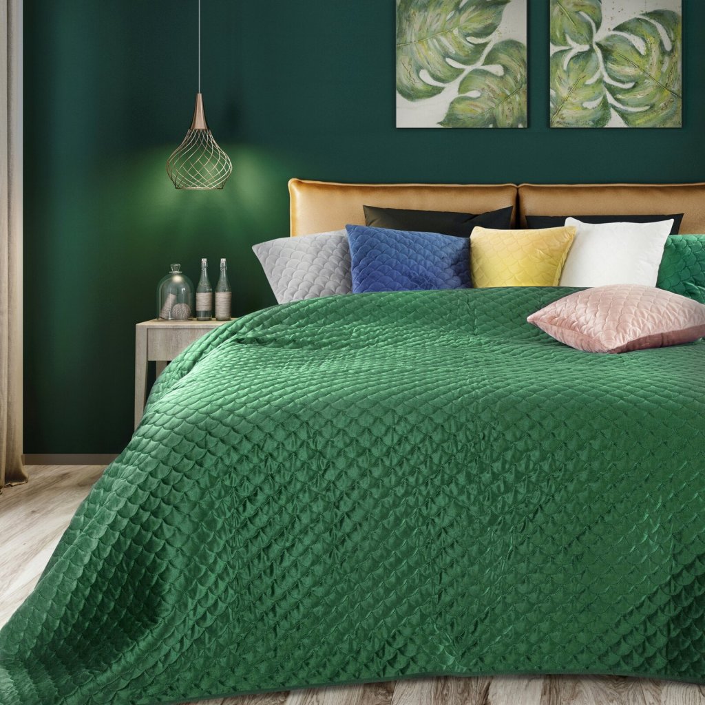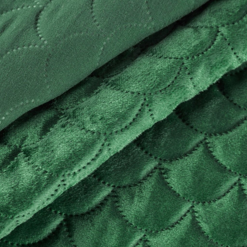 Přehoz na postel z měkkého a na dotek hebkého sametu prošívaného hustým bezešvým vzorem. Šířka: 230 cm, délka: 260 cm, barva: tmavě zelená, hmotnost: 180 GSM, složení: 100% polyester.Doplňkové parametry