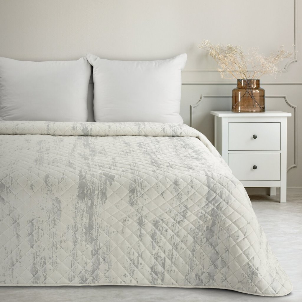 Sametový přehoz na postel vyrobený technikou hot press se vzorem, šířka: 170 cm, délka: 210 cm, barva: bílá, hmotnost: 210 GSM, složení: 100% polyester.Doplňkové parametry