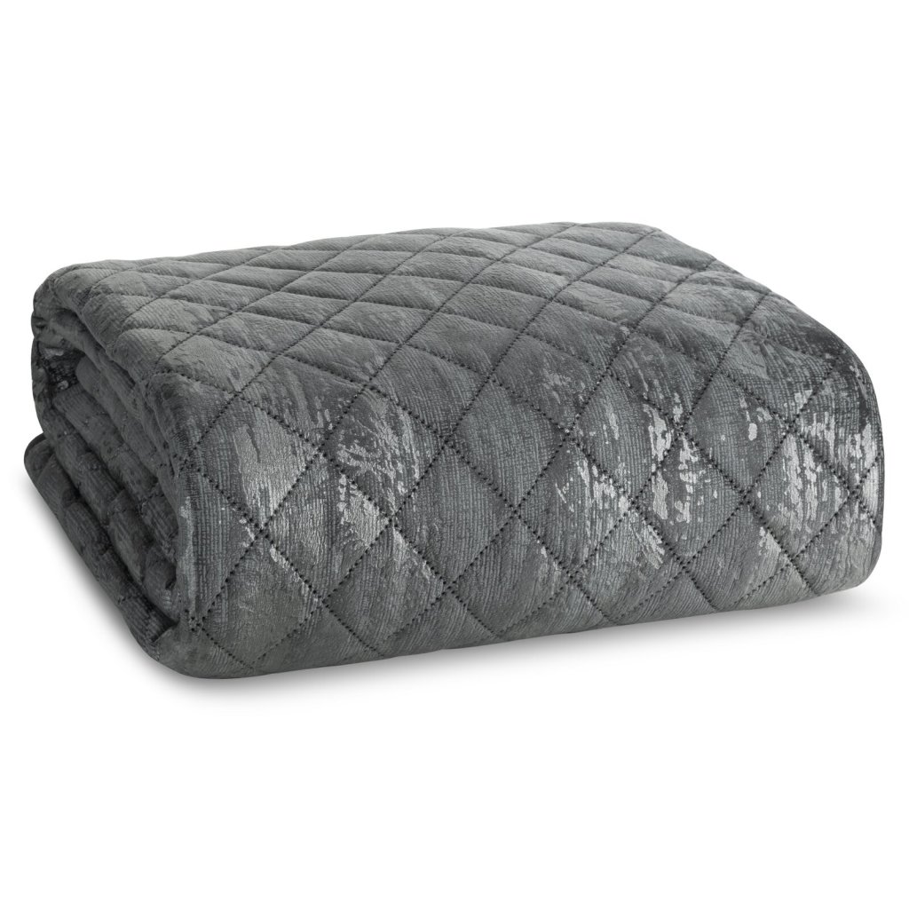 Sametový přehoz na postel vyrobený technikou hot press se vzorem, šířka: 220 cm, délka: 240 cm, barva: šedá, hmotnost: 210 GSM, složení: 100% polyester.Doplňkové parametry