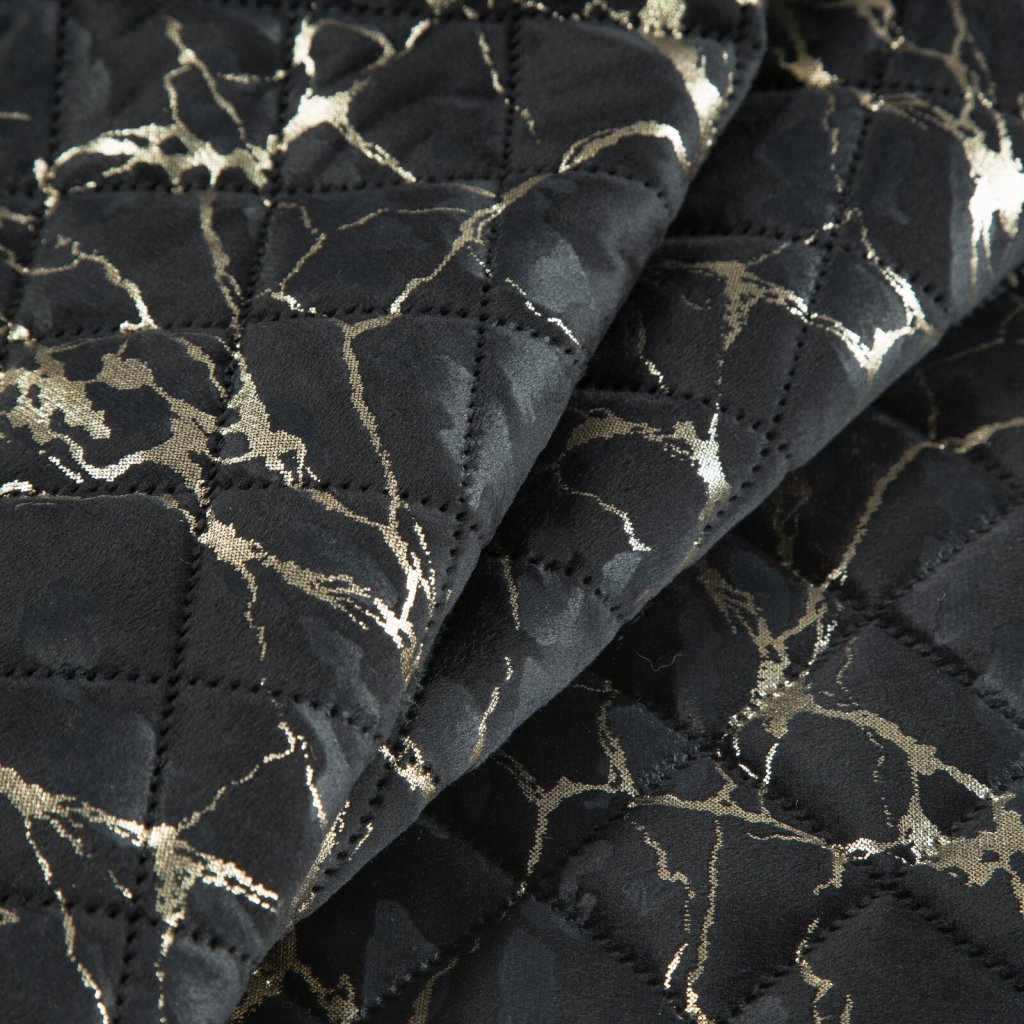 Sametový přehoz na postel vyrobený technikou "hot press" s lesklým potiskem, šířka: 170 cm, délka: 210 cm, barva: černá, hmotnost: 210 GSM, složení: 100% polyester.Doplňkové parametry