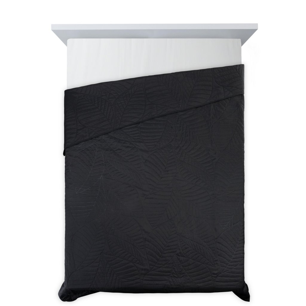 Jednobarevný přehoz na postel vyrobený metodou "hot press". Šířka: 170 cm, délka: 210 cm, barva: černá, hmotnost: 120 GSM, složení: 100% polyester.Doplňkové parametry