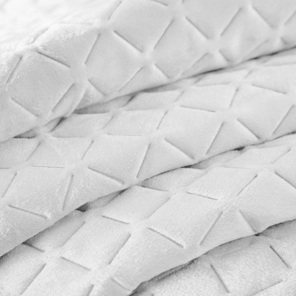 Přehoz přes postel z měkkého a na dotek příjemného sametu vyrobený metodou "hot press". Šířka: 170 cm, délka: 210 cm, barva: bílá, hmotnost: 180 GSM, složení: 100 % polyester.Doplňkové parametry