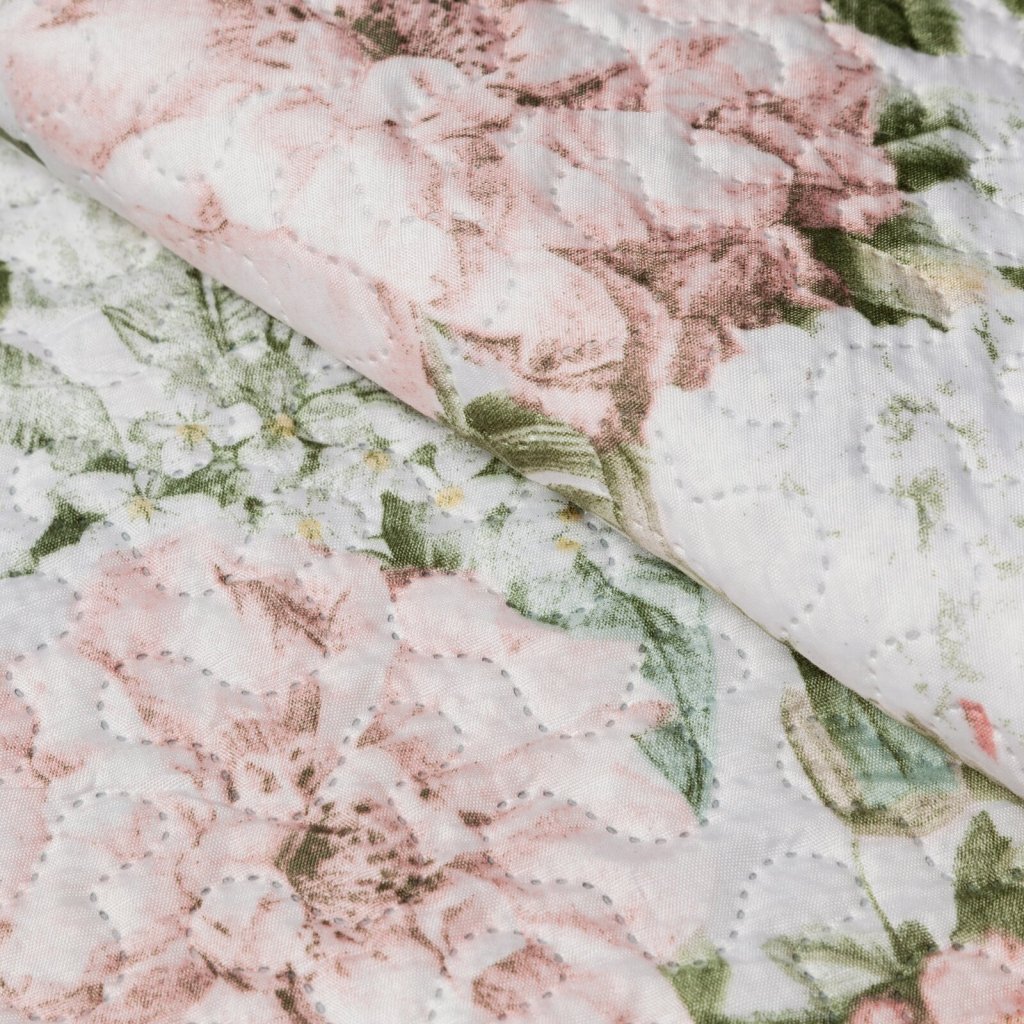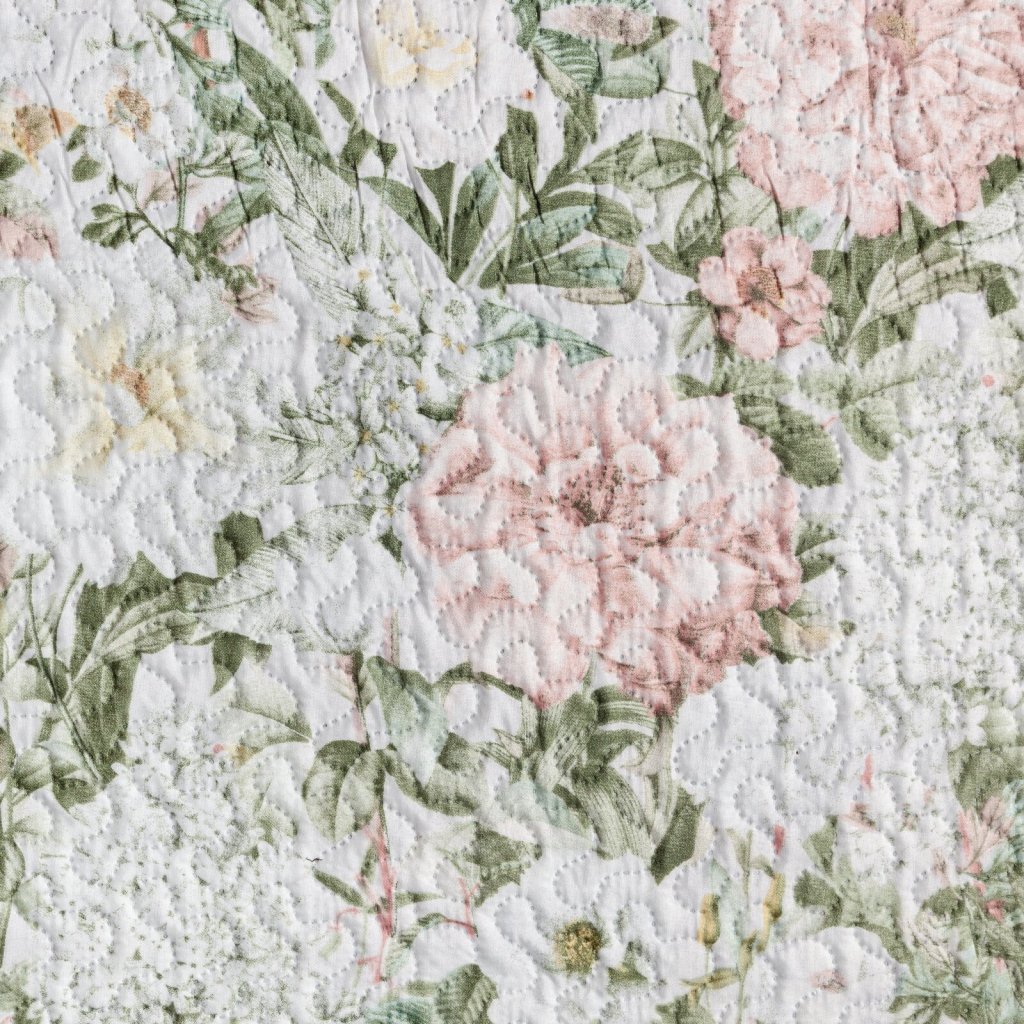 Přehoz ADA působí díky jemnému květinovému vzoru romanticky a elegantně. Látce dominuje hustý motiv růžových a bílých květů obklopených zelenými listy, které vytvářejí svěží vzhled. Celková barevná paleta je decentní, dominují jí pastelové tóny růžové, bílé a zelené na světlém podkladu. Přehoz je prošívaný bezešvou metodou hot press. Šířka: 200 cm, délka: 220 cm, barva: vícebarevná, gramáž: 120 GSM, složení: 100% polyester.Doplňkové parametry
