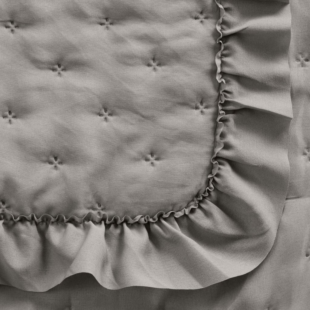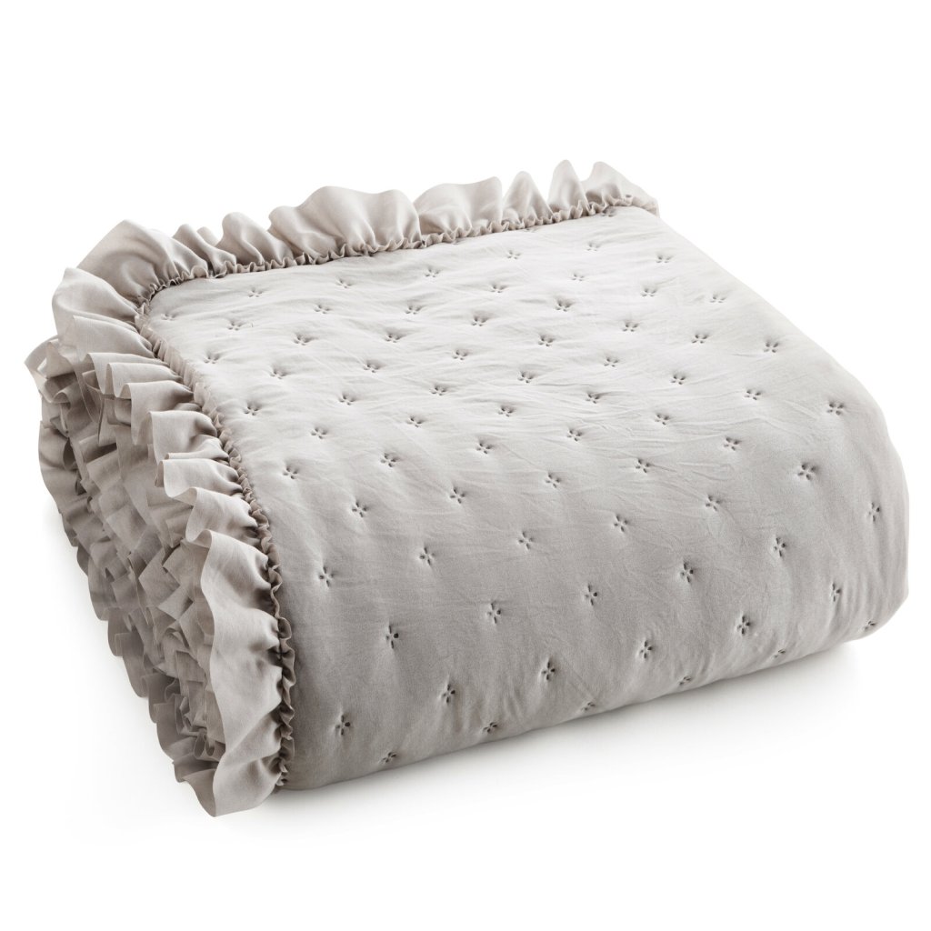 Tkanina měkká na dotek je prošívaná technikou lisování za tepla, která zajišťuje odolný vzor a delší životnost materiálu. Neobvyklý dekor volánků dodá vaší ložnici romantický styl. Lehká a pružná výplň znamená, že přehoz při stlaní postele měkce zakryje postel, a zajistí tak pořádek v ložnici. Šířka: 220 cm, délka: 240 cm, barva: béžová, hmotnost: 80 GSM, složení: 100 % polyester.Doplňkové parametry