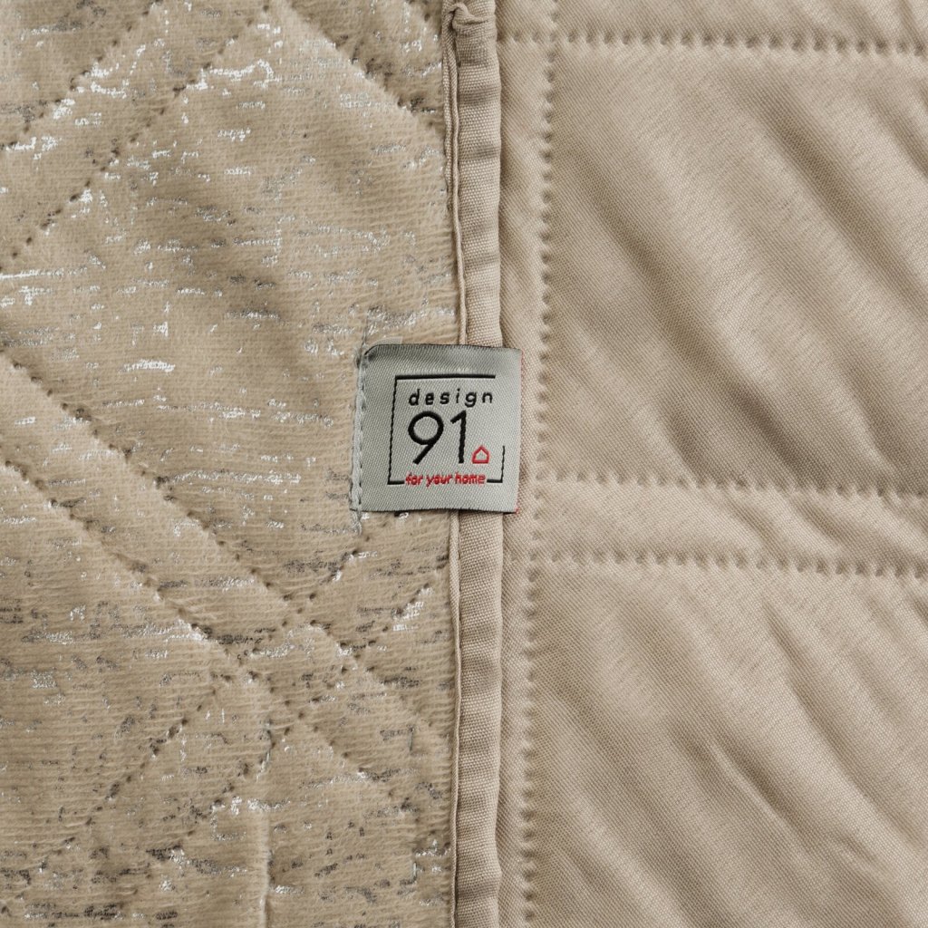 Elegantní sametový přehoz prošívaný moderní metodou hot press, která vytváří jemný kosočtvercový vzor. Přehoz zdobí lesklý, stříbrný, krakelovaný potisk, který má jedinečný, třpytivý efekt. Spodní část přehozu je vyrobena z matné tkaniny, která účinně zabraňuje jeho sklouzávání a zajišťuje stabilitu na posteli nebo pohovce. Šířka: 200 cm, délka: 220 cm, barva: béžová, gramáž: 250 GSM, složení: 100% polyester.Doplňkové parametry