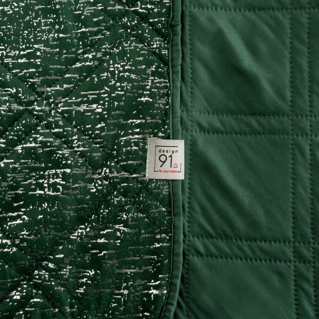 Elegantní sametový přehoz prošívaný moderní metodou hot press, která vytváří jemný kosočtvercový vzor. Přehoz zdobí lesklý, stříbrný, krakelovaný potisk, který má jedinečný, třpytivý efekt. Spodní část přehozu je vyrobena z matné tkaniny, která účinně zabraňuje jeho sklouzávání a zajišťuje stabilitu na posteli nebo pohovce. Šířka: 200 cm, délka: 220 cm, barva: zelená, gramáž: 250 GSM, složení: 100% polyester.Doplňkové parametry