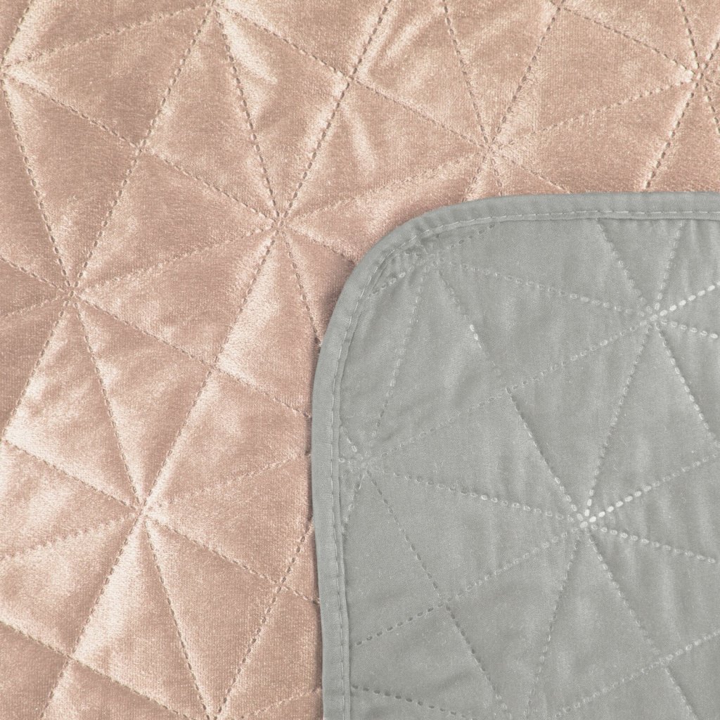 Na dotek velmi příjemný přehoz prošívaný bezešvým lisováním za tepla s jemným geometrickým vzorem. Druhá strana přehozu je ve stříbrné barvě. Šířka: 170 cm, délka: 210 cm, barva: růžová a stříbrná, gramáž: 150 GSM, složení: 100% polyester.Doplňkové parametry