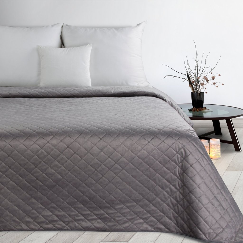 Na dotek velmi příjemné přehozy prošívané bezešvým lisováním za tepla s jemným geometrickým vzorem. Šířka: 220 cm, délka: 240 cm, barva: stříbrná, gramáž: 150 GSM, složení: 100% polyester.Doplňkové parametry