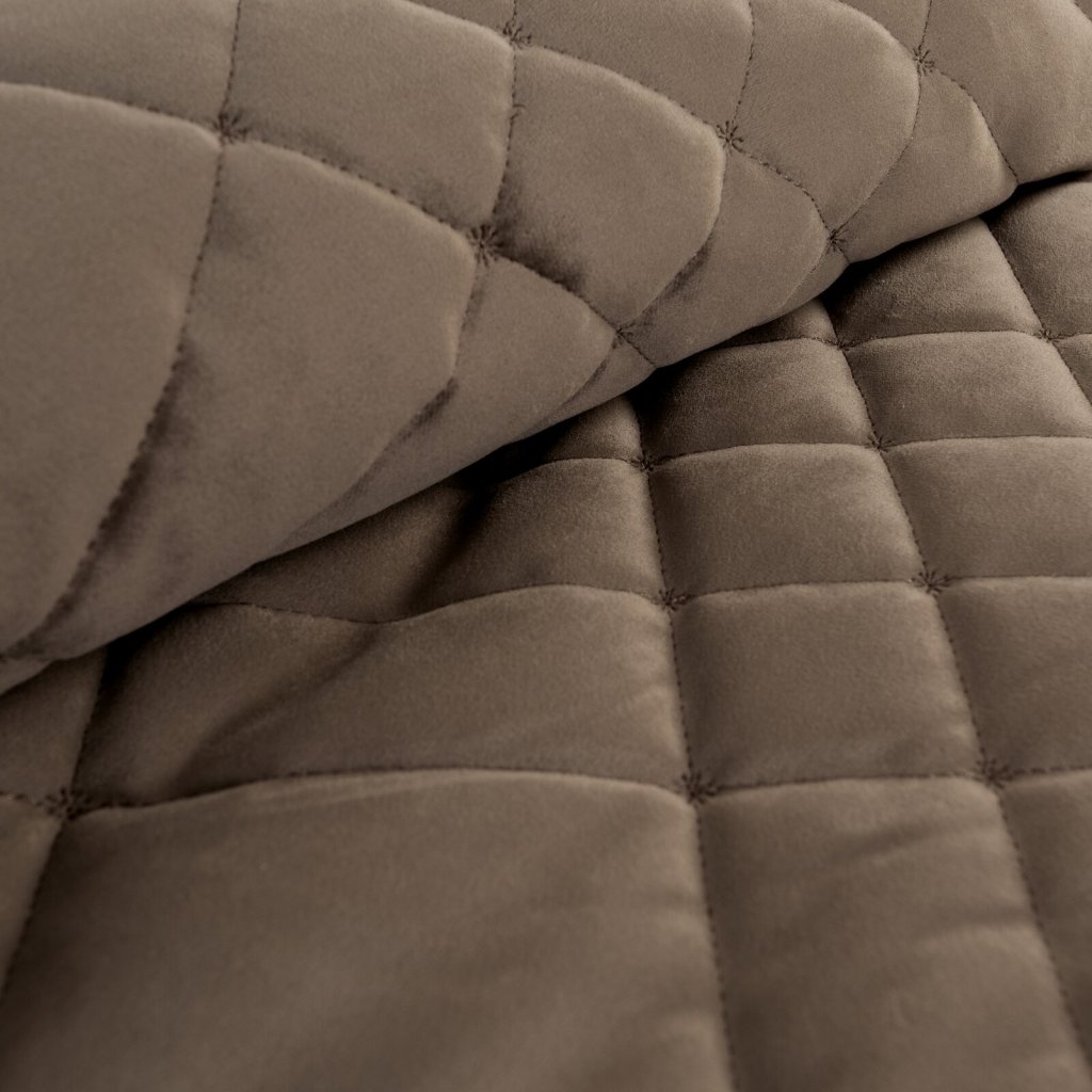 Elegantní jednobarevný přehoz je vyroben z vysoce kvalitní sametové tkaniny a jeho povrch zdobí precizní prošívání, které vytváří geometrický vzor. Okraje přehozu jsou zakončeny ozdobným volánem. Šířka: 220 cm, délka: 240 cm, barva: hnědá, gramáž: 250 GSM, složení: 100% polyester.Doplňkové parametry