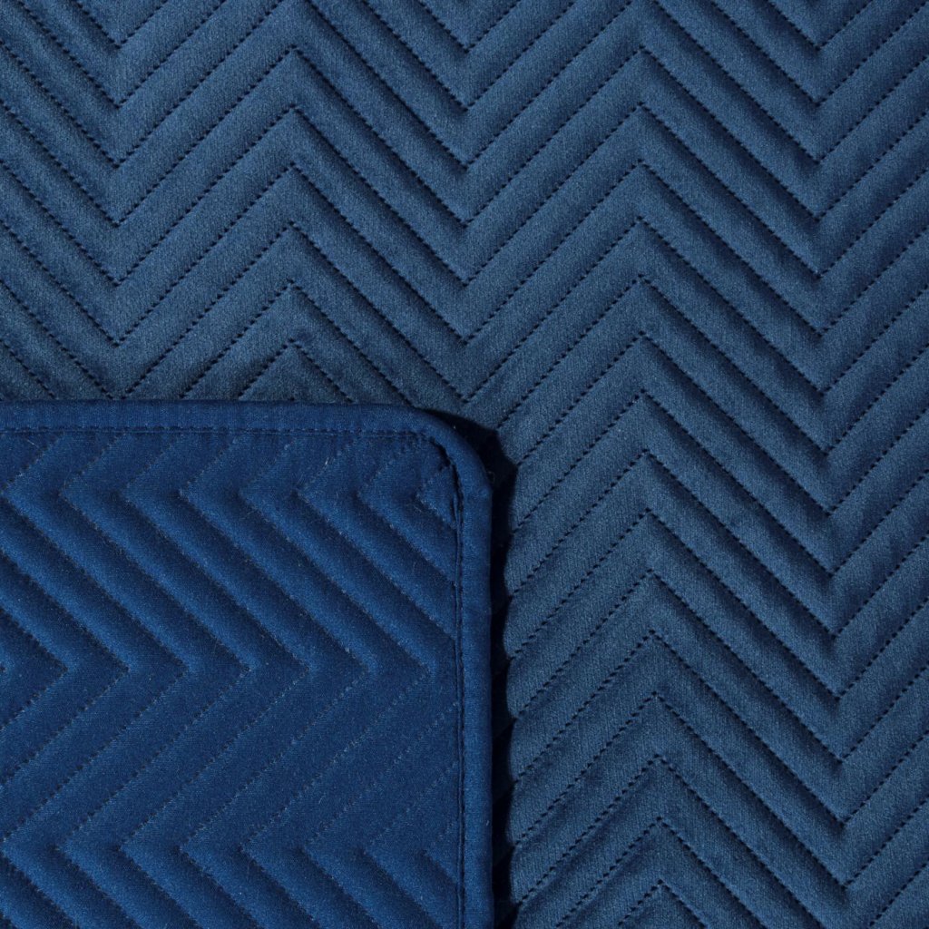 Exkluzivní přehoz na postel z měkkého a na dotek hebkého sametu prošívaného velkým hustým vzorem. Prošívaný metodou hotpress. Šířka: 230 cm, délka: 260 cm, barva: tmavě modrá, gramáž: 250+120+65 GSM, složení: 100% polyester.Doplňkové parametry