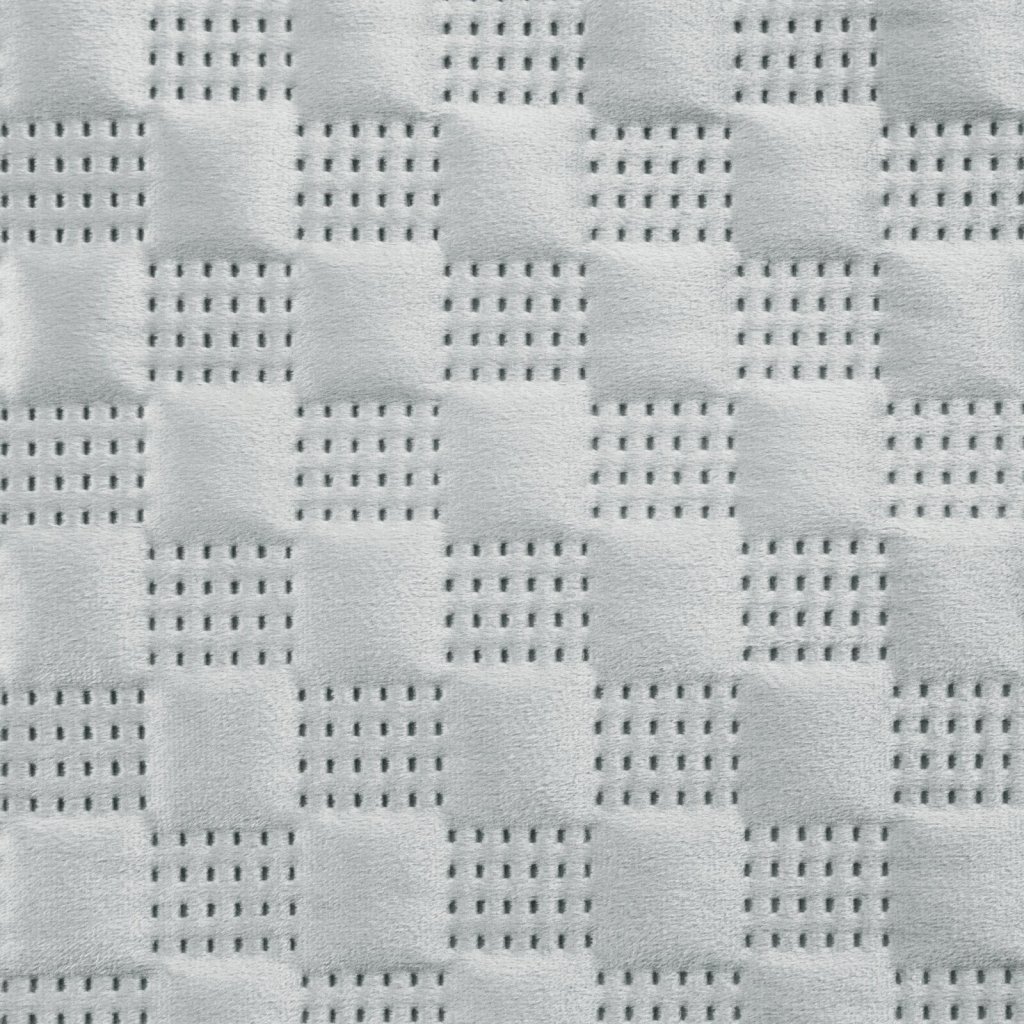 Exkluzivní přehoz na postel z měkkého a na dotek hebkého sametu prošívaného velkým hustým vzorem. Pro prošití byla použita bezešvá metoda hotpress. Šířka: 170 cm, délka: 210 cm, barva: stříbrná, gramáž: 250+120+70 GSM, složení: 100% polyester.Doplňkové parametry