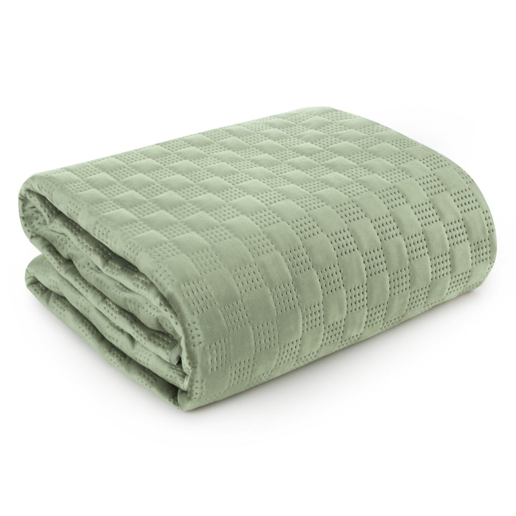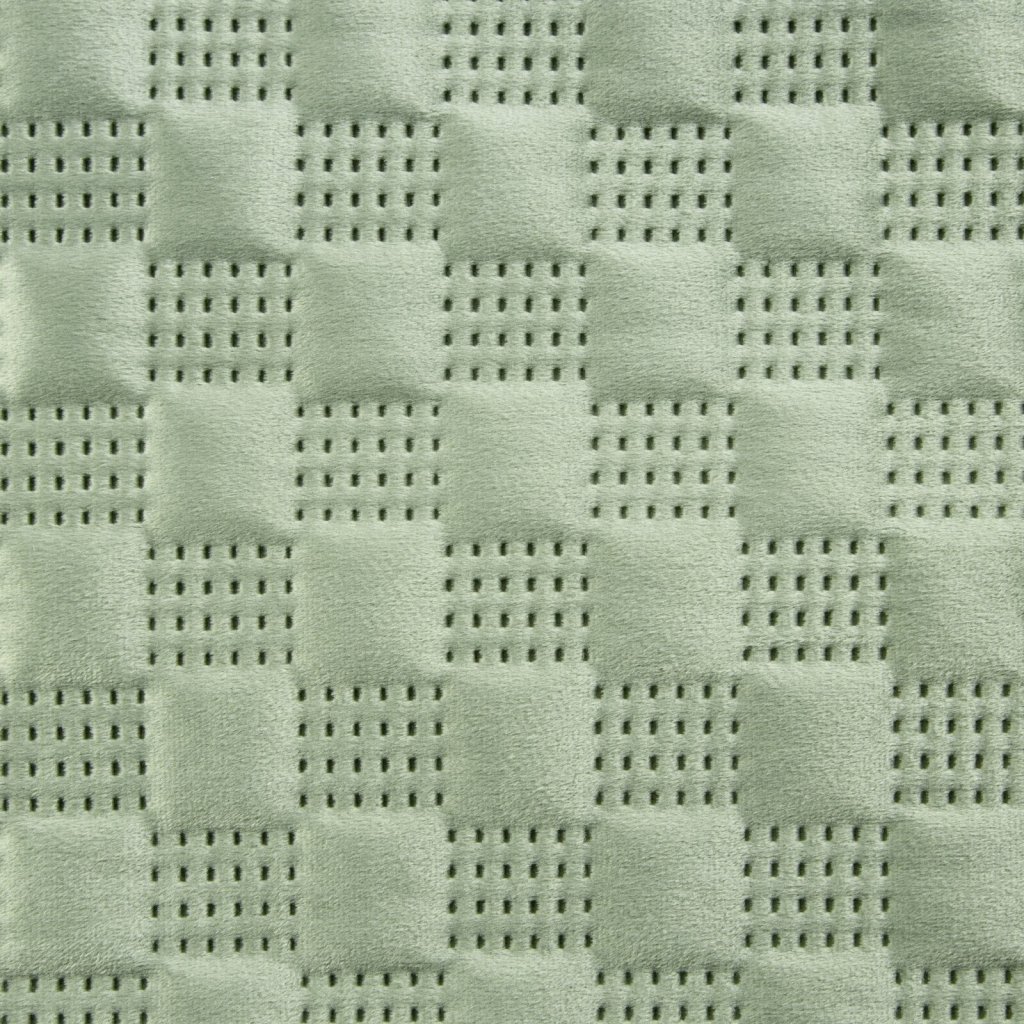 Exkluzivní přehoz na postel z měkkého a na dotek hebkého sametu prošívaného velkým hustým vzorem. Pro prošití byla použita bezešvá metoda hotpress. Šířka: 200 cm, délka: 220 cm, barva: světle zelená, gramáž: 250+120+70 GSM, složení: 100% polyester.Doplňkové parametry