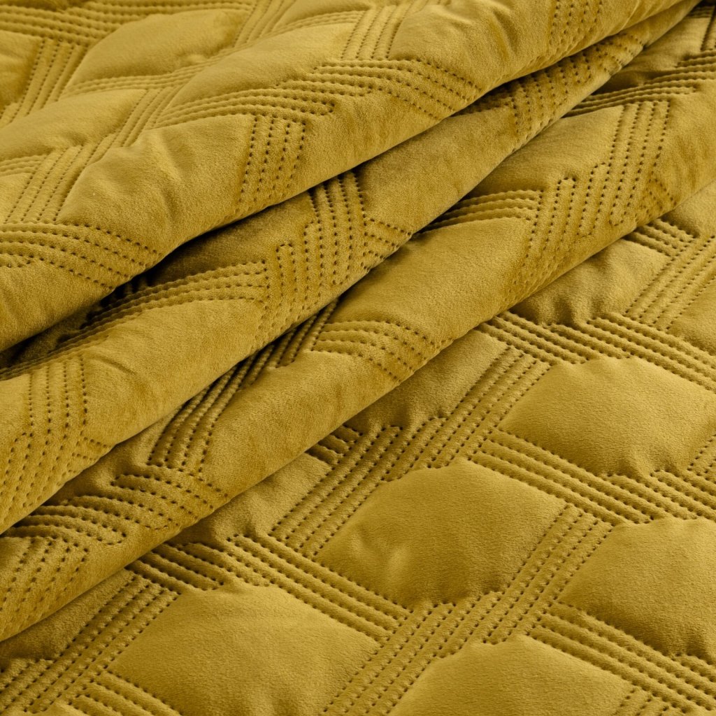 Stylový přehoz na postel z měkké, sametové tkaniny s jemným leskem. Prošívaný moderní metodou hot press, která vytváří elegantní geometrický vzor bez použití tradičních švů. Šířka: 170 cm, délka: 210 cm, barva: medová, gramáž: 250 GSM, složení: 100% polyester.Doplňkové parametry