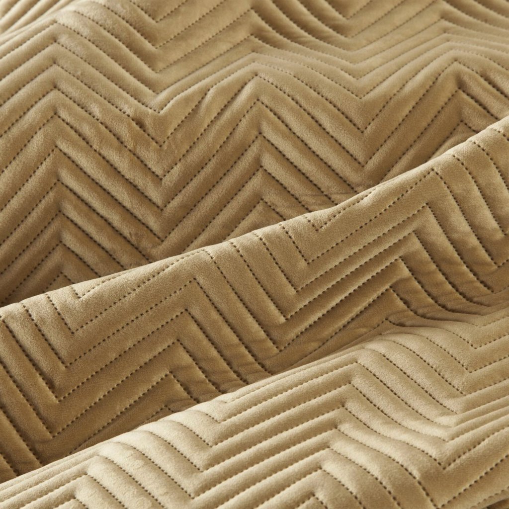 Exkluzivní přehoz na postel z měkkého a na dotek příjemného sametu prošívaného velkým a hustým vzorem rybí kosti. Pro prošití byla použita bezešvá metoda hotpress. Šířka: 230 cm, délka: 260 cm, barva: medová, gramáž: 250 GSM, složení: 100% polyester.Doplňkové parametry