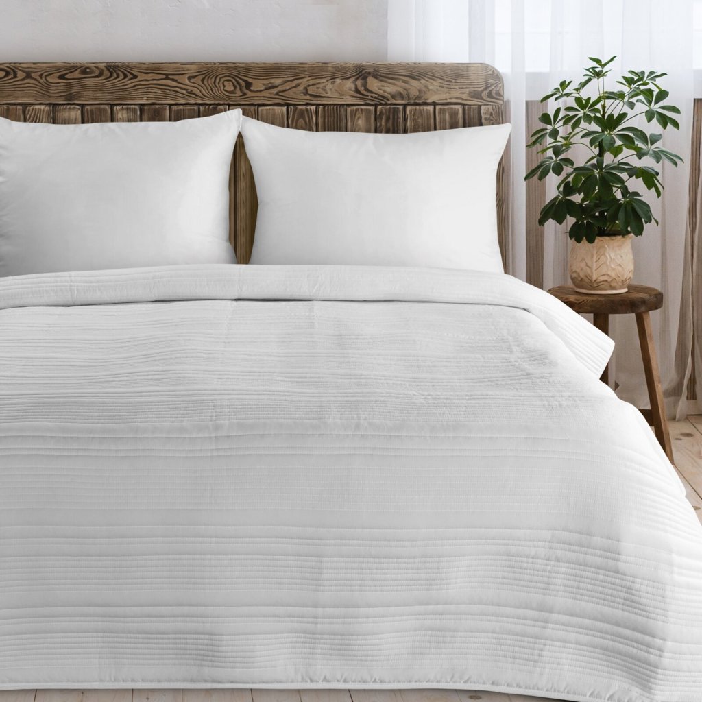 Přehoz TARA s prošíváním v pruhovaném vzoru. Šířka: 170 cm, délka: 210 cm, barva: bílá, gramáž: 320 GSM, složení: 100% polyester.Doplňkové parametry
