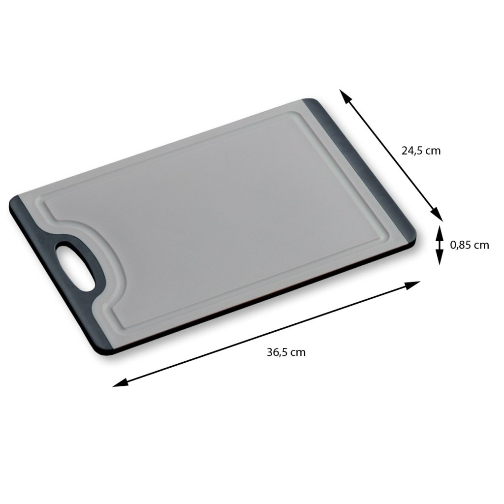 Praktická krájecí deska, která je nejen odolná, ale i mimořádně funkční. Díky svým optimálním rozměrům se skvěle hodí pro každodenní použití, aniž by zabírala příliš mnoho místa na kuchyňské lince. Deska je vybavena protiskluzovou úpravou, která zajišťuje stabilitu při řezání. Vyrobeno z PP a TPE zajišťuje odolnost proti poškození a dlouhou životnost. Hladký povrch desky usnadňuje mytí a hygienu.Doplňkové parametry