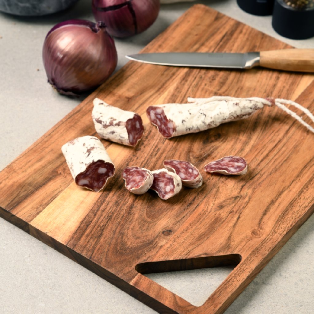Je vyrobena z kvalitního akáciového dřeva s certifikací FSC® , které se vyznačuje pevností, dlouhou životností a šetrností k ostří nožů . Odolný povrch si poradí s každodenním používáním bez ztráty estetiky či funkčnosti.