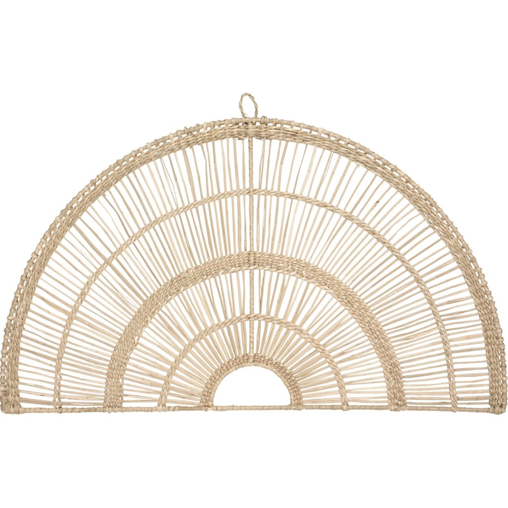 Moderní nástěnná dekorace v podobě půlkruhu, která potěší milovníky originálních a jedinečných dekorativních prvků. Vyrobeno z proutí se hodí do všech typů interiérů, zejména do těch, které jsou zařízeny v boho, moderním nebo skandinávském stylu. Dekorace se okamžitě stane výrazným prvkem místnosti, vnese nádech orientalismu a efektně doplní jakékoli aranžmá.Doplňkové parametry