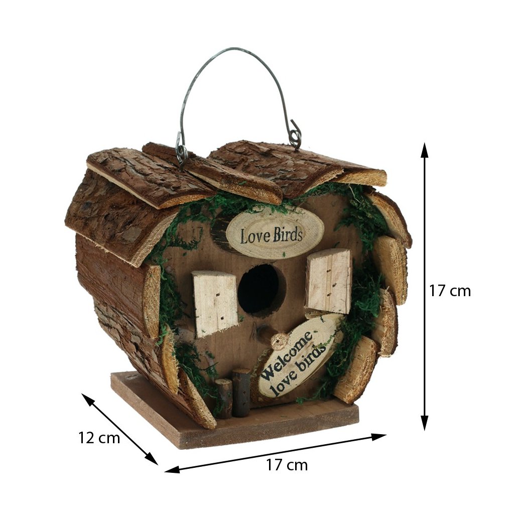 Ptačí budka Love Birds, 17x17x12 cm, dřevo, hnědá