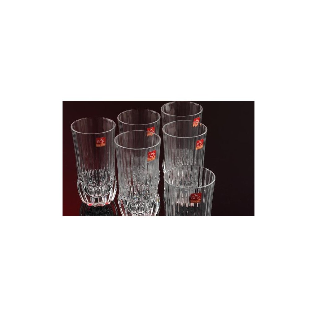 RCR Adagio sklenice o objemu 400 ml v sadě 6 kusů jsou dokonalou volbou pro každého, kdo hledá elegantní a kvalitní servírování osvěžujících nápojů. Jsou vyrobeny z bezolovnatého křišťálového skla Luxion , které je ekologické a zcela recyklovatelné. Tyto vysoké sklenice typu long značky RCR se vyznačují dokonalou čirostí, nádherným leskem a příjemným zvukem při každém přípitku. S objemem 400 ml, výškou 150 mm a maximálním průměrem 78 mm jsou ideální pro vodu, džus, ledový čaj, drinky či jiné studené nápoje. Sklenice lze mýt v myčce na nádobí, což zaručuje snadnou údržbu a dlouhou životnost. Dopřejte si skleničky z kolekce Adagio a užívejte si každý doušek s elegancí a stylem.