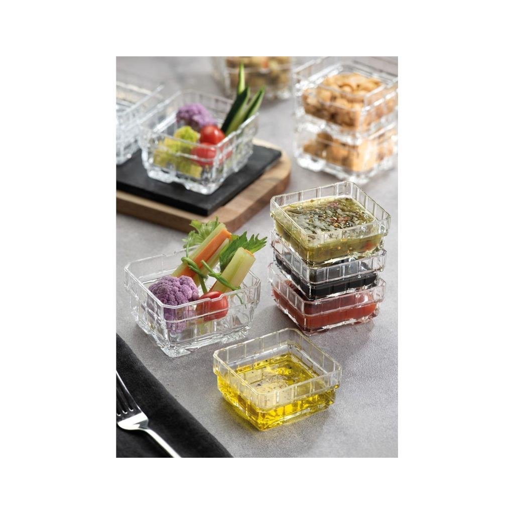 Praktická a stylová miska z křišťálového skla o objemu 200 ml z kolekce STACK, která vyniká dokonalou čirostí a výrazným leskem . Tento set šesti misek je ideální pro servírování dipů, oliv a jiných oblíbených pochutin . Bezolovnaté křišťálové sklo Luxion zaručuje vysokou kvalitu a dlouhou životnost, přičemž miska díky svému stylovému designu perfektně doplní jakýkoli interiér. Rozměry – výška 5,1 cm, šířka 8,7 cm a hloubka 8 cm – dělají tuto misku ideální pro každodenní používání i speciální příležitosti . Misky jsou vhodné do myčky nádobí , což zajišťuje snadnou údržbu a pohodlné používání.