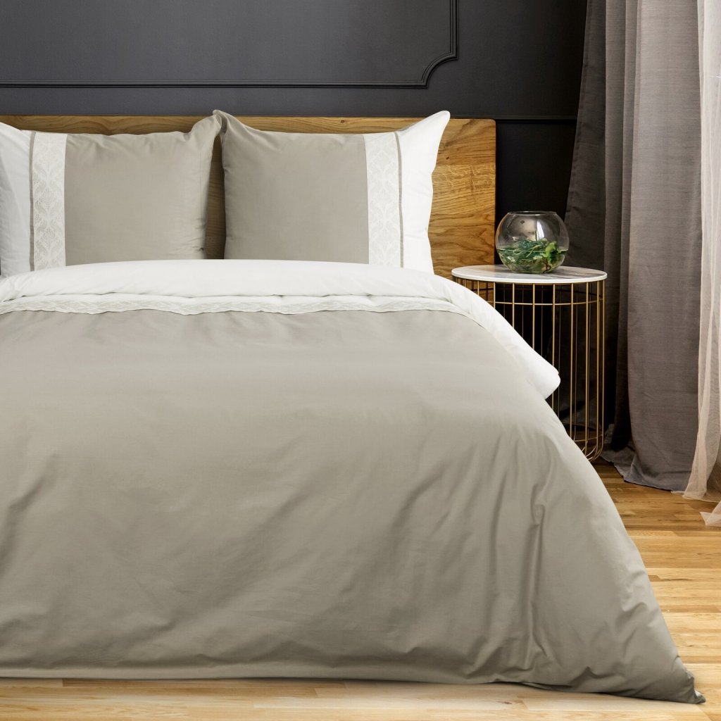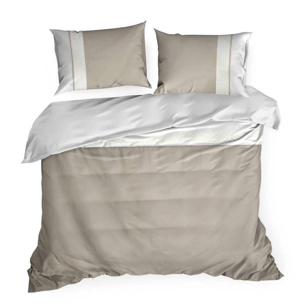 Ložní souprava REINA z měkké, prodyšné bavlny renforcé, zdobená jemným vyšívaným vzorem, který jí dodává elegantní a moderní charakter. Výšivka jemně zvýrazňuje strukturu ložního prádla a dodává mu stylový vzhled, který se bude skvěle hodit do různých interiérů. Šířka: 160 cm, délka: 200 cm, povlak na polštář 2 ks 70x80 cm, barva: béžová a krémová, gramáž: 115 GSM, složení: 100% bavlna.Doplňkové parametry