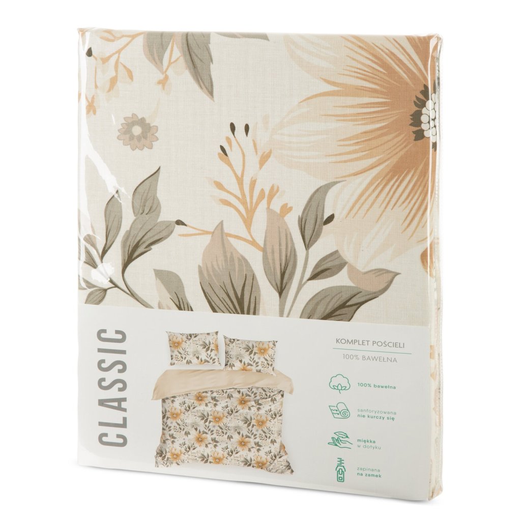 Elegantní ložní souprava SONIA z kvalitní bavlny renforcé dodá vaší ložnici svěžest, útulnost a vytvoří pohodlné a stylové místo k odpočinku. Tento materiál, známý svou vynikající měkkostí, odolností a prodyšností, je navíc hustší a odolnější než běžná bavlna, což zajišťuje dlouhodobé používání a vysoký komfort spánku. Krásný, výrazný květinový vzor zdobící povlečení dodává celé ložní soupravě jedinečný charakter. Další předností sady je praktický zip, diskrétně skrytý za lemem na boku prostěradla. Šířka: 220 cm, délka: 200 cm, povlak na polštář 2 ks 70x80 cm, barva: vícebarevná, gramáž: 105 GSM, složení: 100% bavlna.Doplňkové parametry