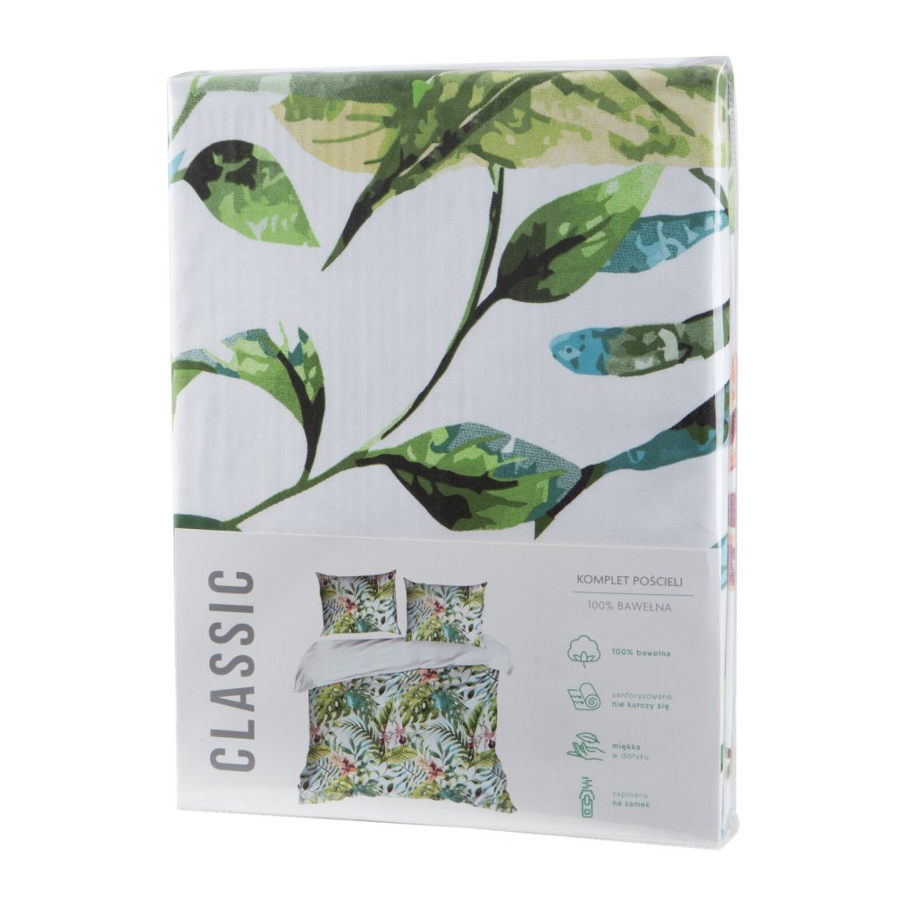 Elegantní ložní souprava SONIA z kvalitní bavlny renforcé dodá vaší ložnici svěžest, útulnost a vytvoří pohodlné a stylové místo k odpočinku. Tento materiál, známý svou vynikající měkkostí, odolností a prodyšností, je navíc hustší a odolnější než běžná bavlna, což zajišťuje dlouhodobé používání a vysoký komfort spánku. Krásný, nápadný vzor listů zdobící povlečení dodává celé ložní soupravě jedinečný charakter. Další výhodou sady je praktický zip, diskrétně skrytý za lemem na boku prostěradla. Šířka: 220 cm, délka: 200 cm, povlak na polštář 2 ks 70x80 cm, barva: vícebarevná, gramáž: 105 GSM, složení: 100% bavlna.Doplňkové parametry