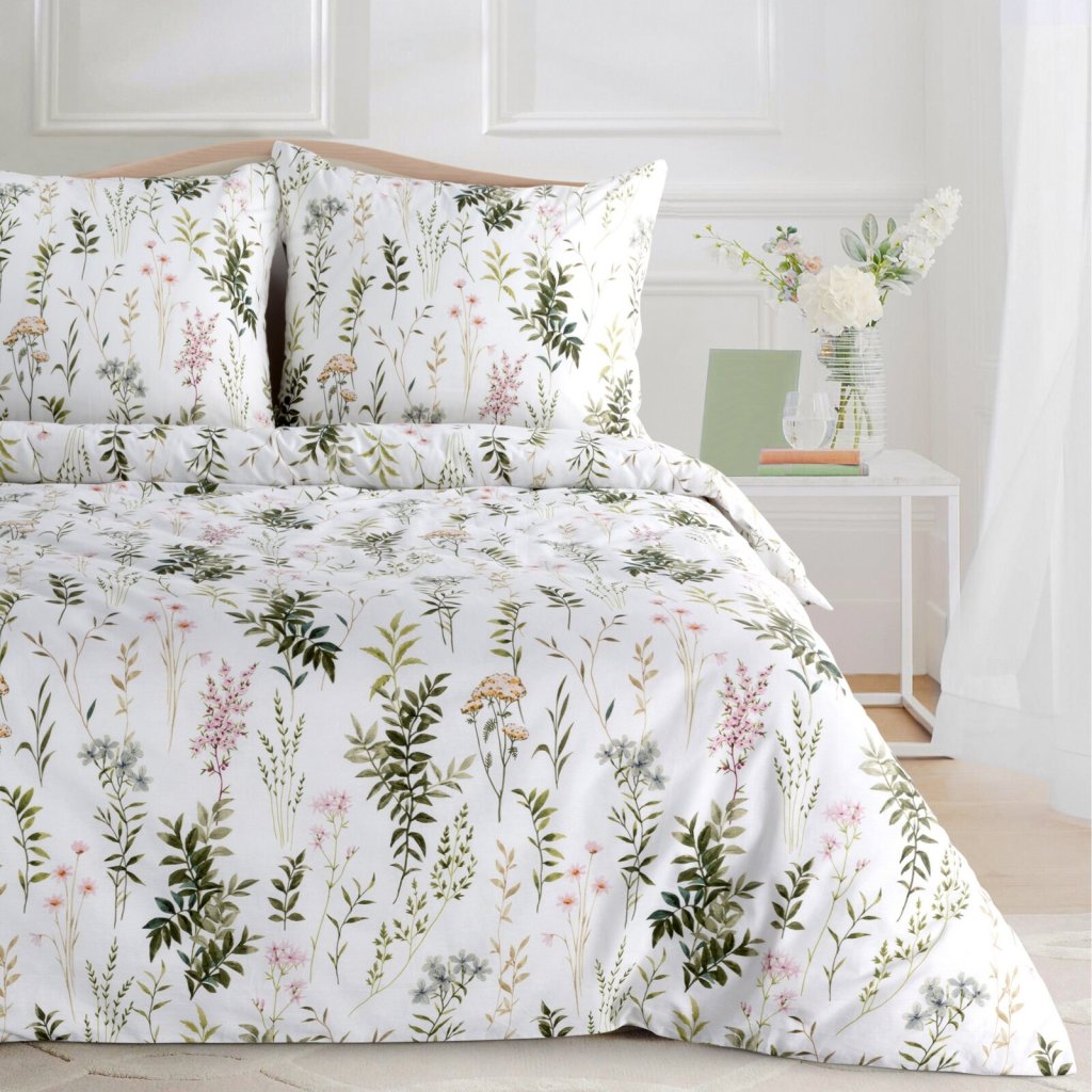 Objevte mimořádné pohodlí s povlečením z nejjemnější bavlny Renforcé. Tento materiál zaujme svou měkkostí, která zajistí dokonalý spánek každou noc. Povlečení je po celé ploše zdobeno jemným potiskem rostlin, který do ložnice vnese nádech přírody a elegance. Povlečení je opatřeno skrytým zipem. Povlečení má certifikát OEKO-TEX, který zaručuje, že výrobek neobsahuje škodlivé látky a je bezpečný pro vaši pokožku a zdraví. Šířka: 140 cm, délka: 200 cm, povlak na polštář 1 ks 70x80 cm, barva: vícebarevná, gramáž: 105 GSM, složení: 100% bavlna.Doplňkové parametry
