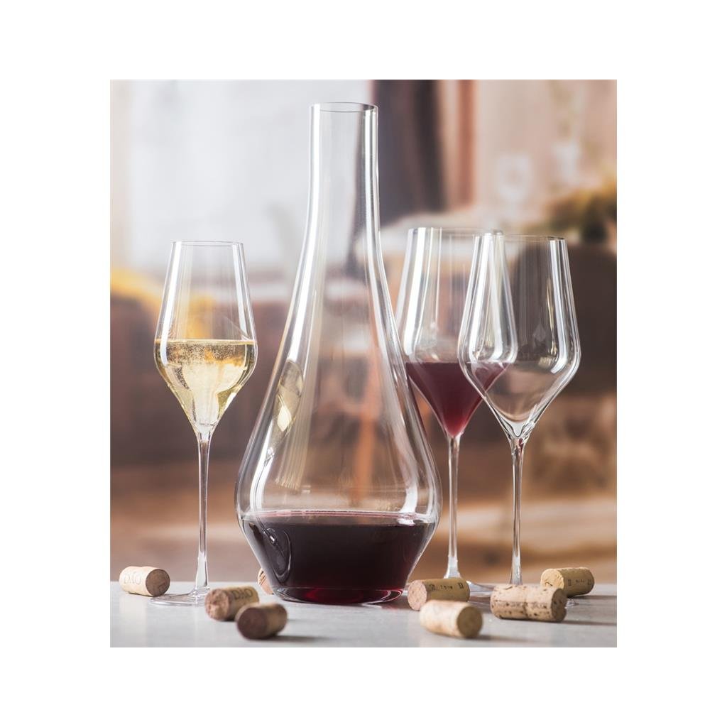 Výrobky RONA:- mají krásný, elegantní design, hodí se do tradičních i moderních interiérů- nožičky sklenic nejsou k misce přilepeny, ale vytaženy již ve fázi výroby- neobsahují žádné škodlivé látky, jsou vyrobeny z bezolovnatého křišťálového skla, jsou šetrné k životnímu prostředí- krásně se lesknou, jsou průhledné, čiré- lze je mýt v myčce. Skleněná karafa, karafa na víno nebo karafa na vodu byla vyrobena z křišťálového skla nejvyšší kvality. Karafa je speciální skleněná nádoba, která se používá k dekantování vína, tj. k jeho provzdušňování - víno z láhve jednoduše nalijete do skleněné karafy. Provzdušňování, dekantace vína slouží mimo jiné k odstranění sedimentu (což je přirozený jev ve víně) a k lepšímu zvýraznění chutí a vůní. Skleněná karafa bez zátky je ideální pro červená vína, která vyžadují více okysličení. Karafu lze s úspěchem použít i na vodu.Skleněná karafa, skleněná karafa na víno BALLET