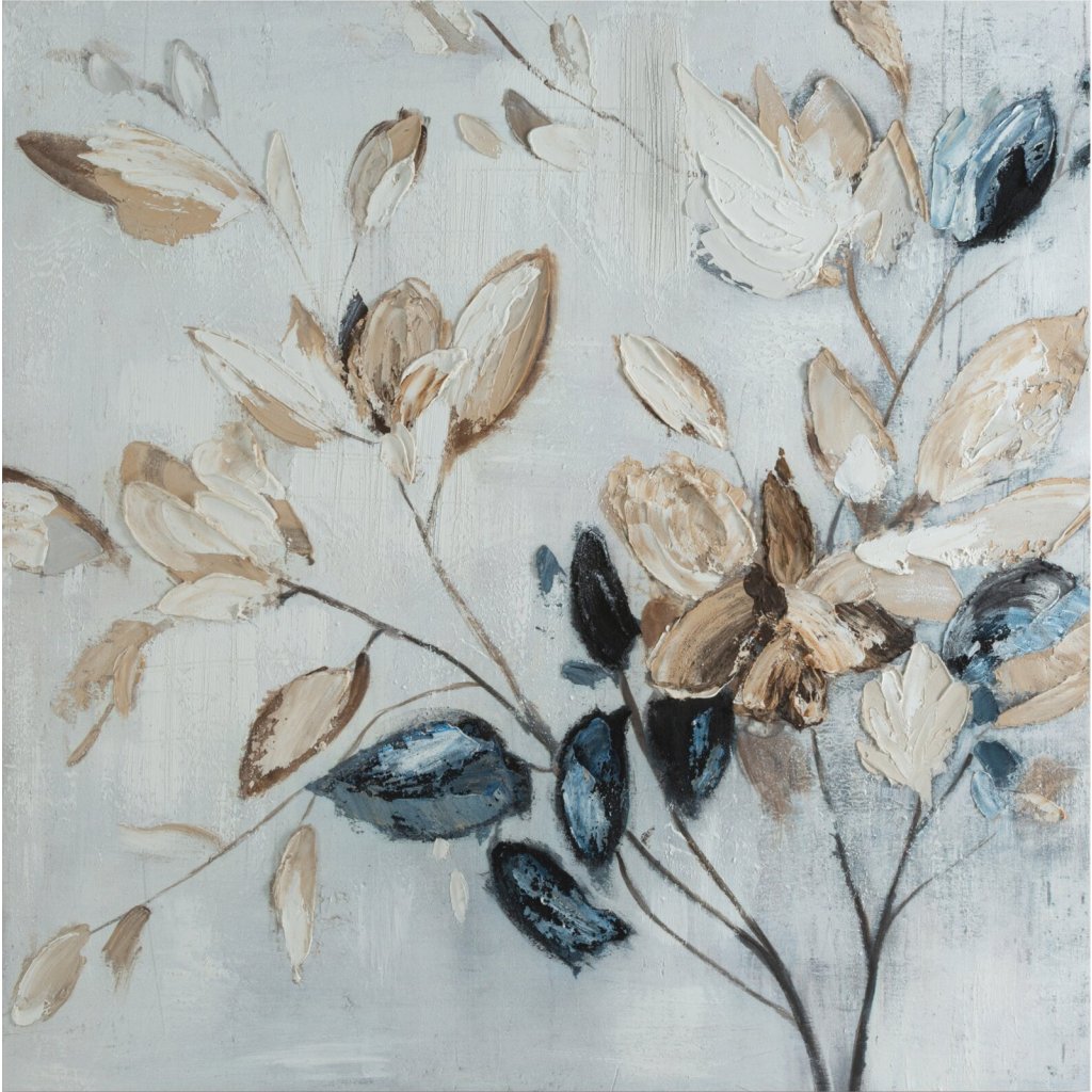 Ručně malovaný obraz na plátně zobrazuje jemné listy s béžovými akcenty. Kompozice vyzařuje klid a sofistikovanost. Je dokonalou dekorací pro okouzlující, moderní nebo klasický interiér. Šířka: 80 cm, délka: 80 cm, barva: vícebarevná, složení: plátno, dřevo, barva.Doplňkové parametry