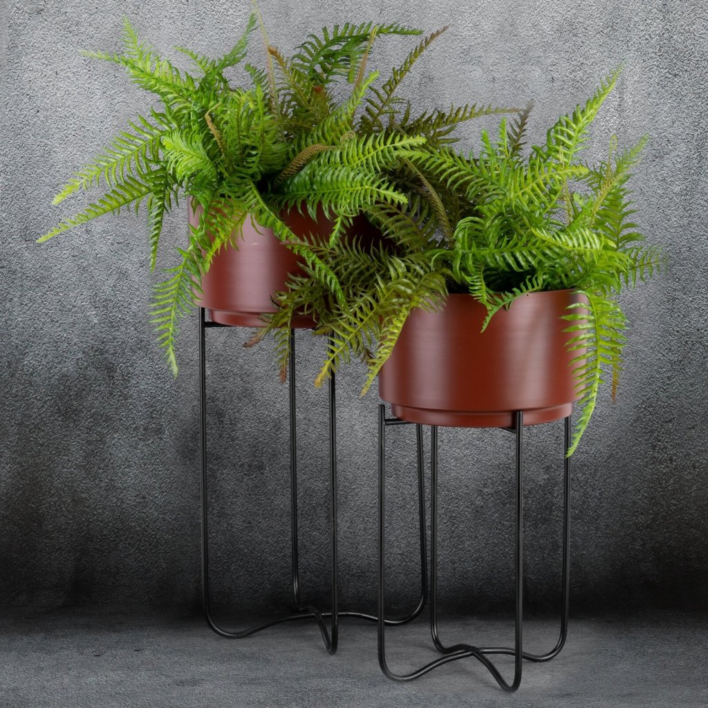 SADA 2KS DEKORAČNÍ KOVOVÝ KVĚTINÁČ DONICA/206 26X50+31X61 CM HNĚDÁ