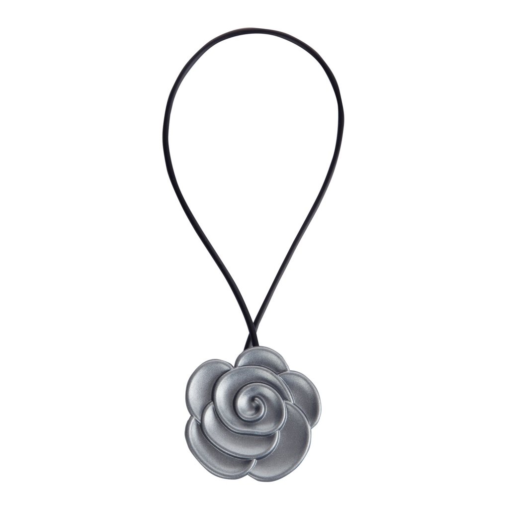 Povrch v ocelové barvě působí moderně a stylově, zatímco dekorativní květina ve tvaru růže dodává doplňku jemný a romantický nádech. Rozměry držáku jsou 5 × 21 cm, což zaručuje univerzální použití s většinou typů záclon a závěsů.
