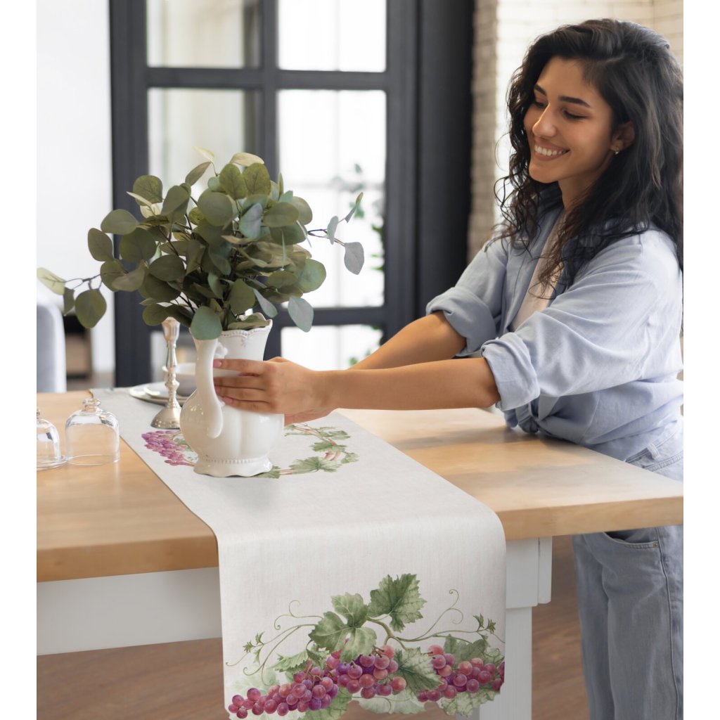 Laserem vyřezávané prostírání z hrubé tkaniny zdobené motivem vinných listů je dekorací, která dodá vašemu interiéru šarm a styl. Kvalitní potisk a pečlivé zpracování zaručují spokojenost s výrobkem a motiv rostliny dokonale oživí interiér. Šířka: 33 cm, délka: 33 cm, barva: vícebarevná, hmotnost: 420 GSM, složení: 100% polyester.Doplňkové parametry