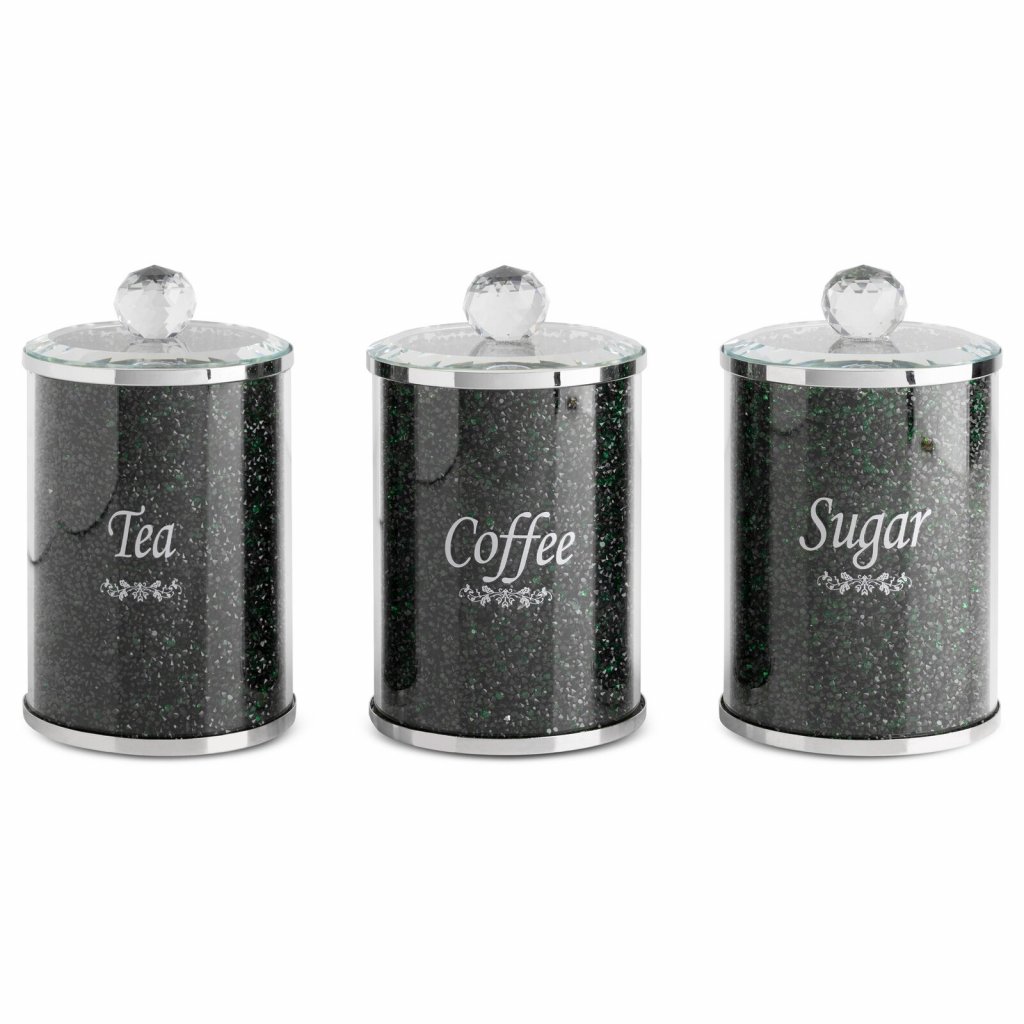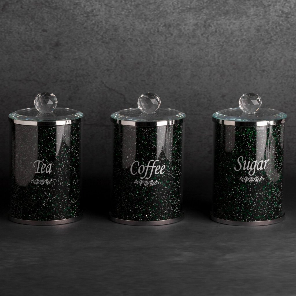 SADA 3KS NÁDOB NA ČAJ, CUKR A KÁVU POKRYTÁ KŘISTALIKY 10x10x17 CM ZELENÁ/ČERNÁ