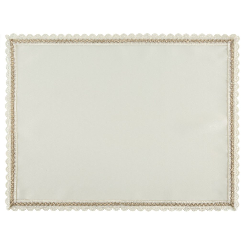 Krémový dekorační ubrus s ozdobnou krajkou, šířka: 30 cm, délka: 40 cm, barva: krémová a zlatá, hmotnost: 140 GSM, složení: 100% polyester.Doplňkové parametry