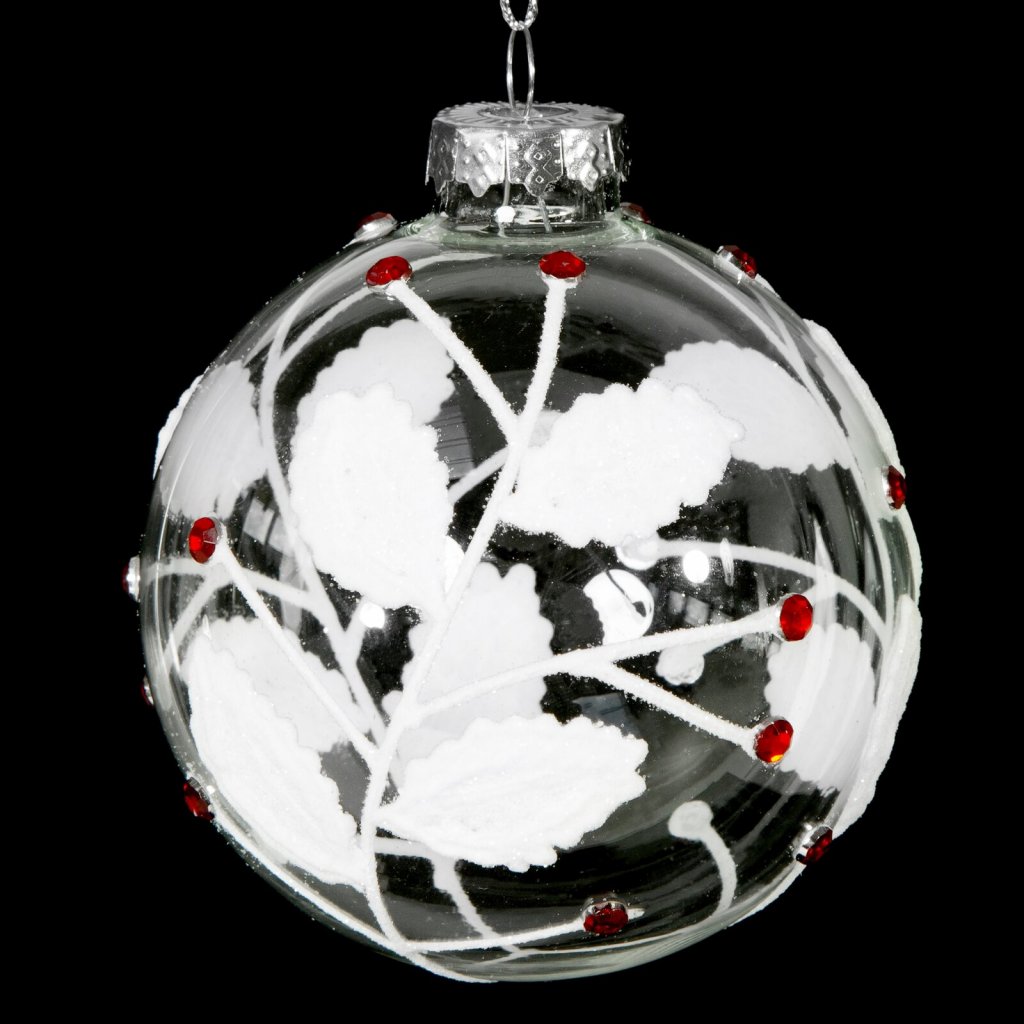 Skleněný ornament s reliéfními bílými květy barva: bílá/stříbrná, složení: 100 % skloDoplňkové parametry