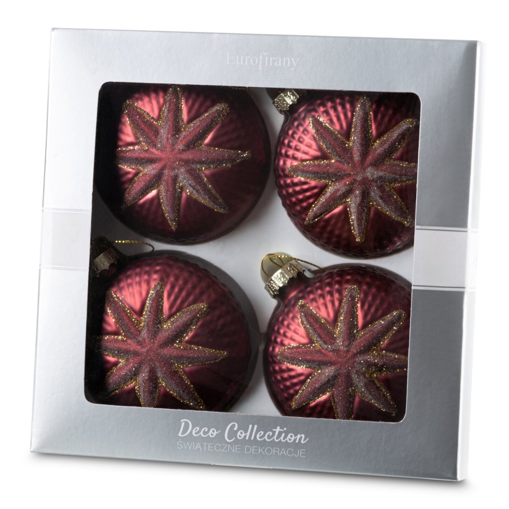 SADA 4KS VÁNOČNÍ OZDOBA SKLENĚNÁ (FI) 8 CM BORDOVÁ
