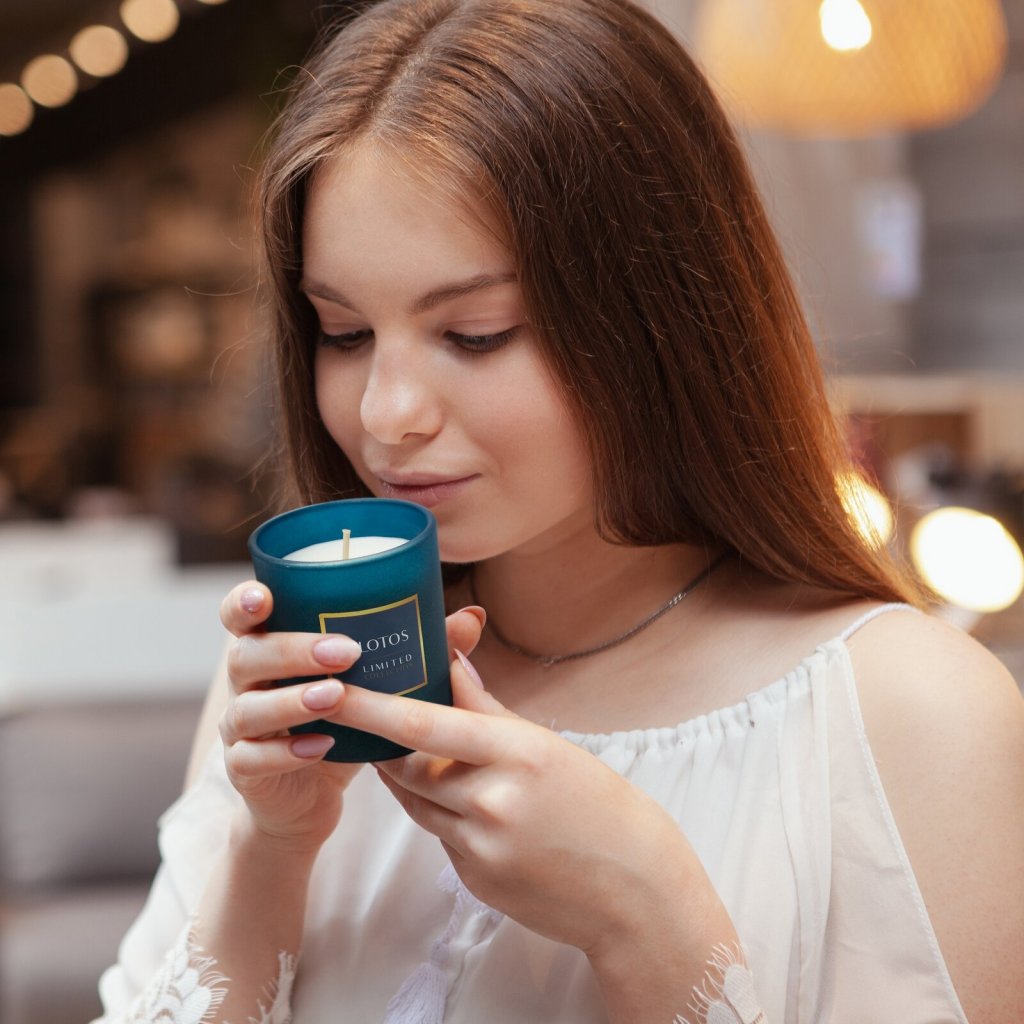 Svíčka s vůní šalvěje a bílého pačuli, doba hoření 48 h, šířka: (fi) 11 cm, délka: 14 cm, barva: tmavě tyrkysová.Doplňkové parametry