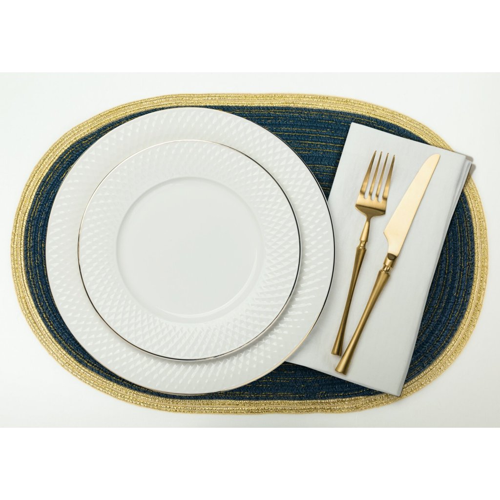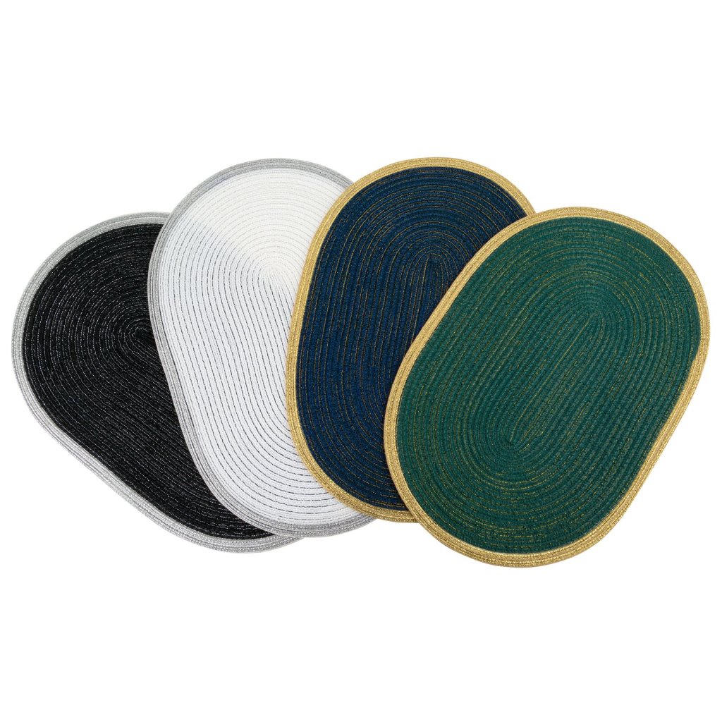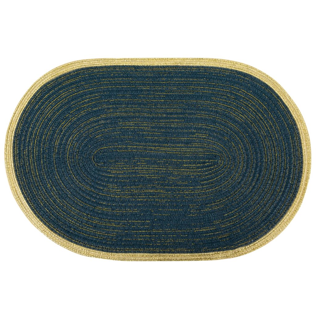 Oválná podložka na stůl, šířka: 30 cm, délka: 45 cm, barva: tmavě modrá a zlatá, složení: 100% polyester.Doplňkové parametry