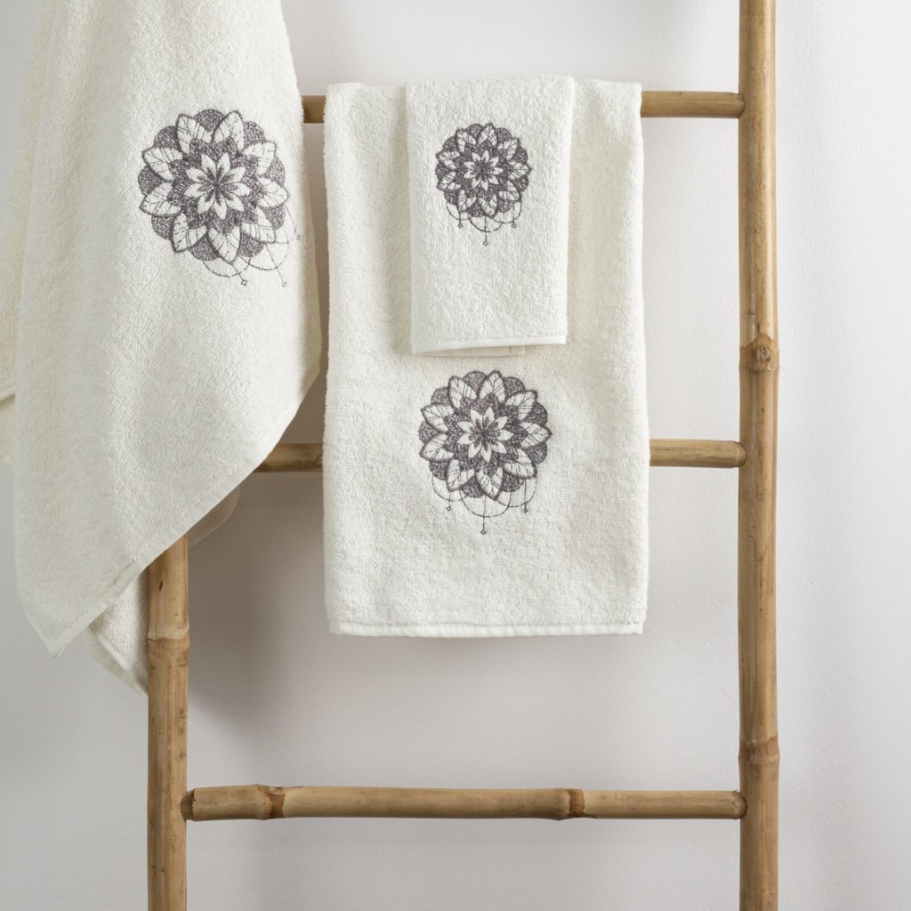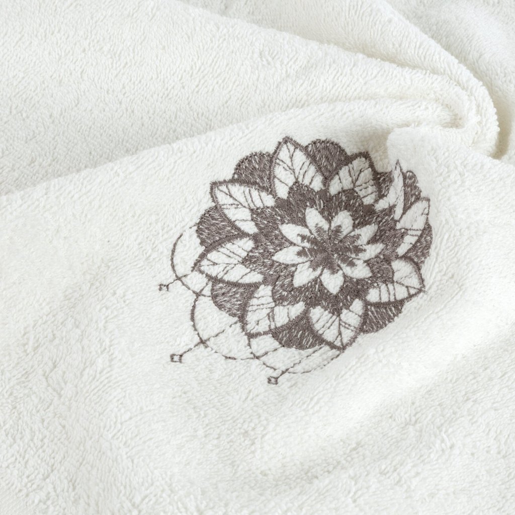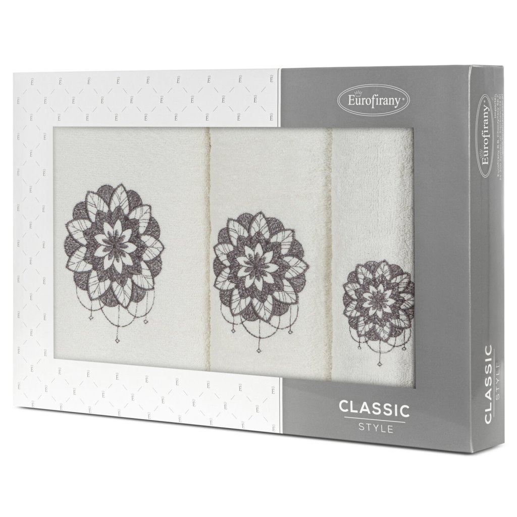 Sada ručníků s výšivkou, rozměry: 30x50 cm, 50x90 cm, 70x140 cm , barva: krémová, hmotnost: 380 GSM, složení: 100% bavlna.Doplňkové parametry