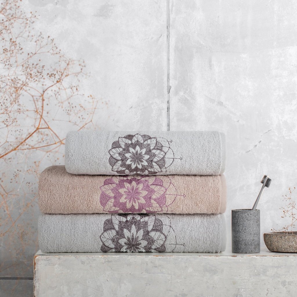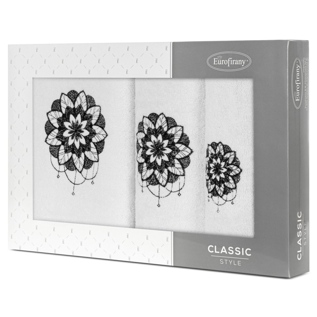 Sada ručníků s výšivkou. Velikost: 1 ks 30x50 cm + 1 ks 50x90 cm + 1 ks70x140 cm, barva: vícebarevná, hmotnost: 380 GSM, složení: 100% bavlna.Doplňkové parametry