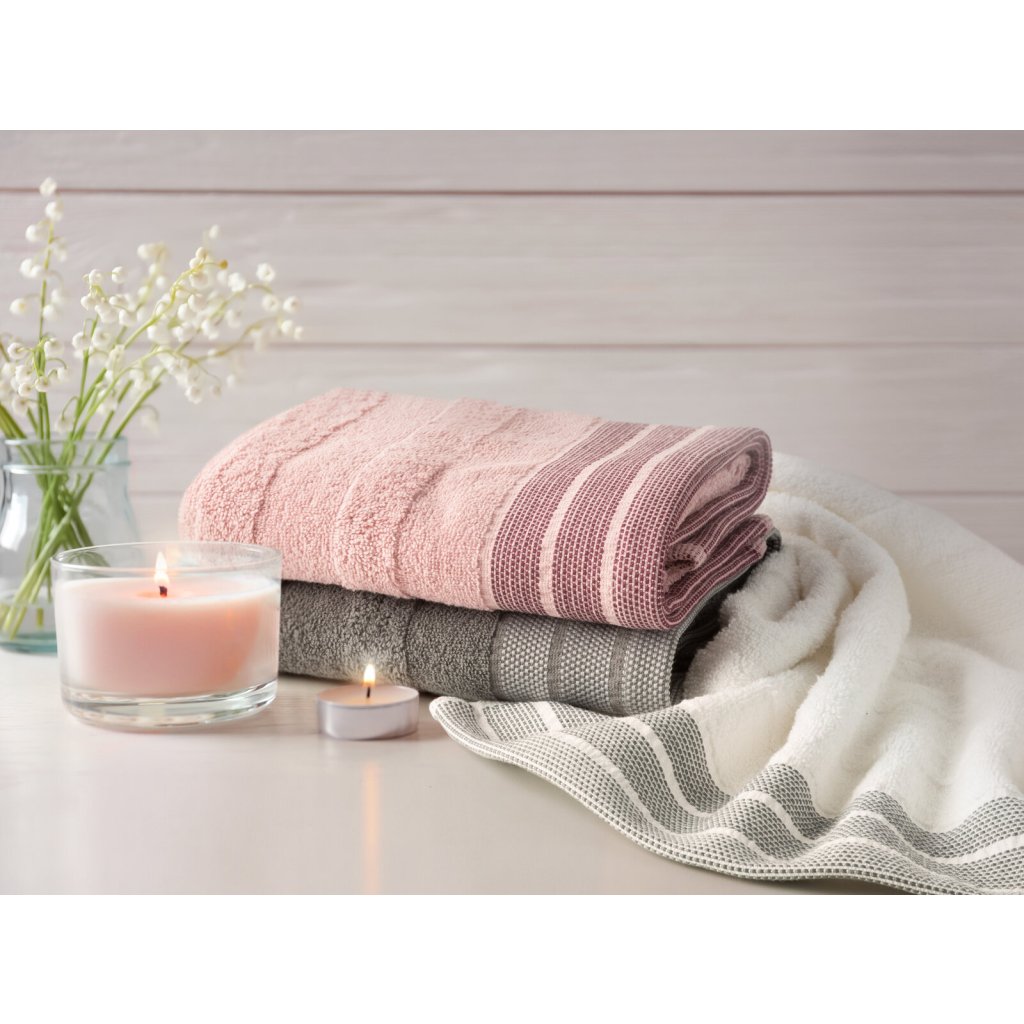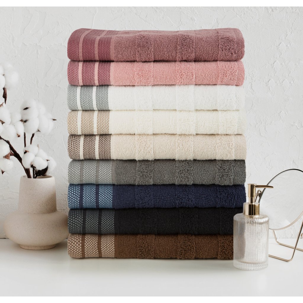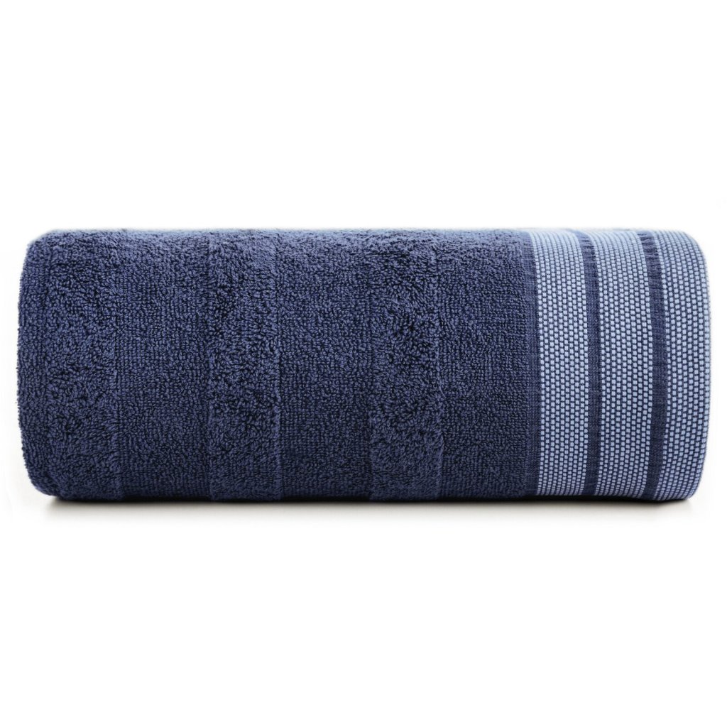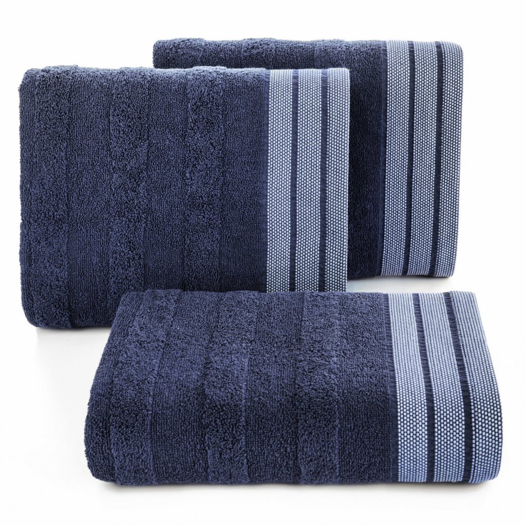 Ručník s ozdobným žakárovým lemem, šířka: 30 cm, délka: 50 cm, barva: tmavě modrá, hmotnost: 500 GSM, složení: 100% bavlna.Doplňkové parametry