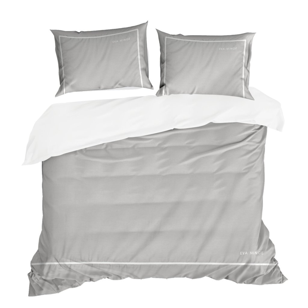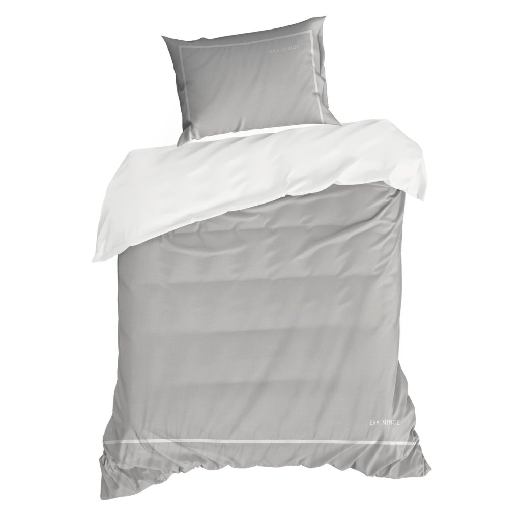 Sada exkluzivního designového povlečení z bavlněného saténu z kolekce Eva Minge. Zapínání na zip a precizní zpracování. Barva: šedá a bílá, gramáž: 125 GSM, šířka: 160 cm, délka: 200 cm, 2 ks povlaků na polštář 70x80 cm, složení: 100% bavlna.Doplňkové parametry