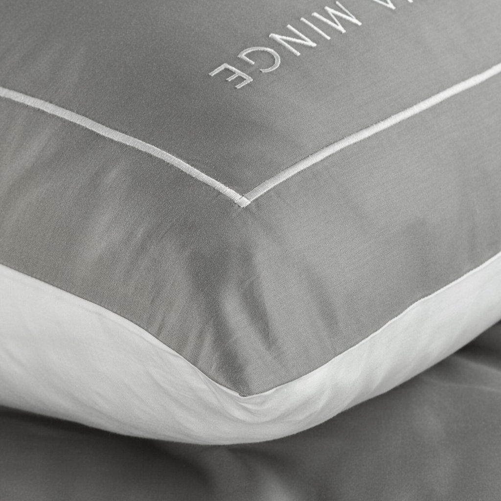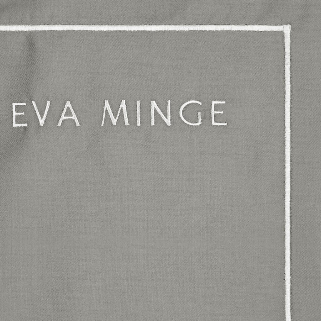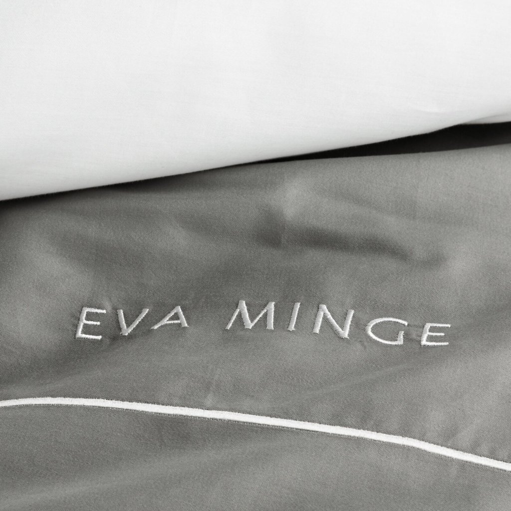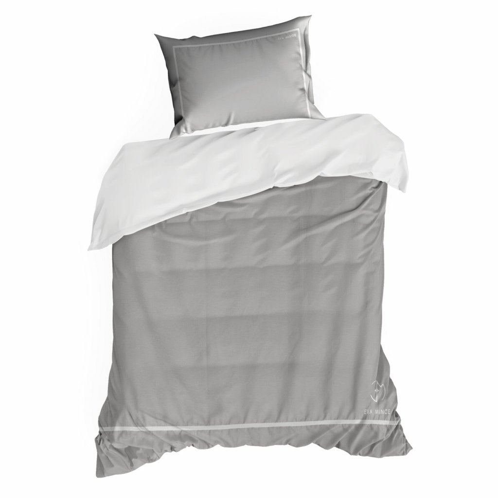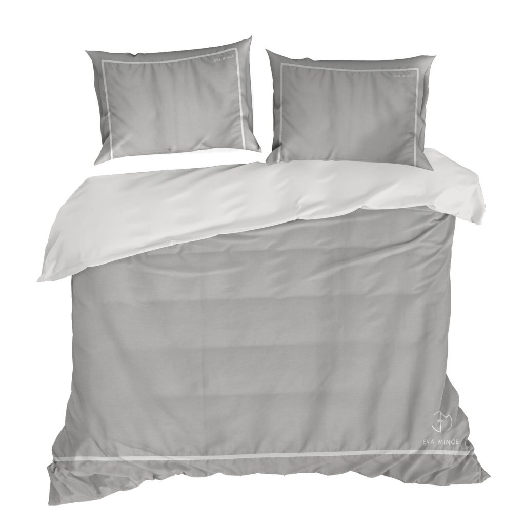 Sada exkluzivního designového povlečení z bavlněného saténu z kolekce Eva Minge. Zapínání na zip a precizní zpracování. Barva: šedá a bílá, gramáž: 125 GSM, šířka: 220 cm, délka: 200 cm, 2 ks povlaků na polštář 70x80 cm, složení: 100% bavlna.Doplňkové parametry