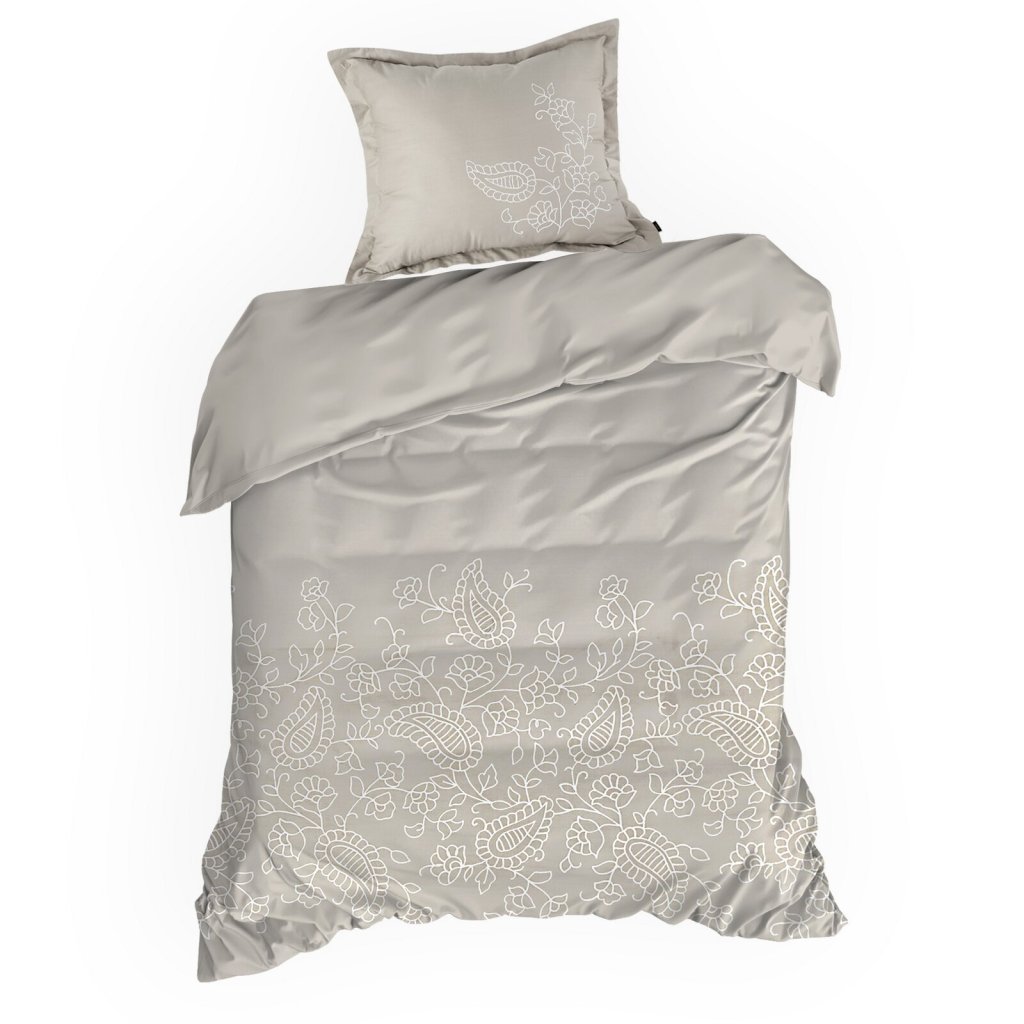 Saténová ložní souprava s výšivkou, šířka: 160 cm, délka: 200 cm, povlak na polštář: 2 ks 70x80 cm, barva: béžová, gramáž: 120 GSM, složení: 100% bavlna.Doplňkové parametry