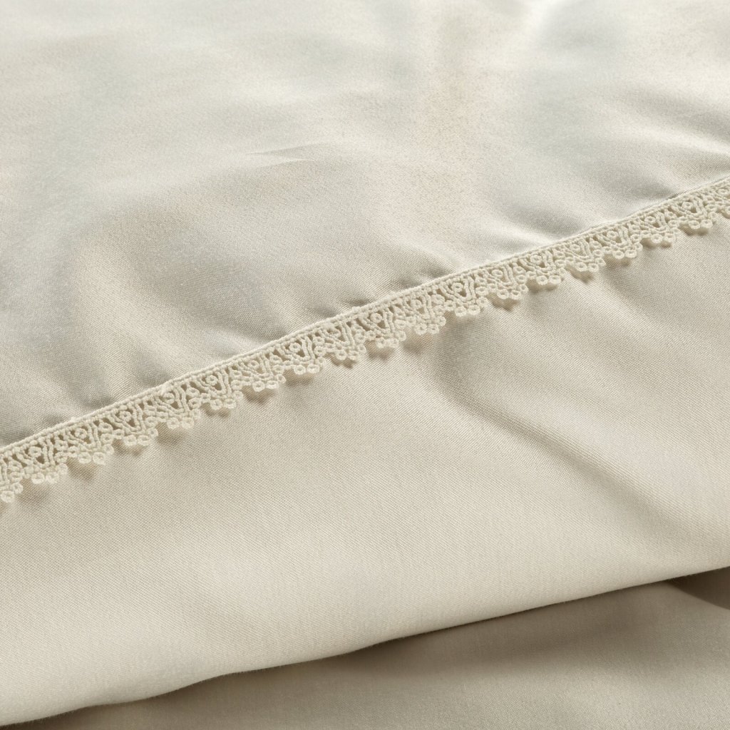 Povlečení se saténovou vazbou, zdobené krajkou, šířka: 160 cm, délka: 200 cm, povlaky na polštář: 2 ks 70x80 cm, barva: krémová, hmotnost: 125 GSM, složení: 55 % bavlna, 45 % polyester.Doplňkové parametry