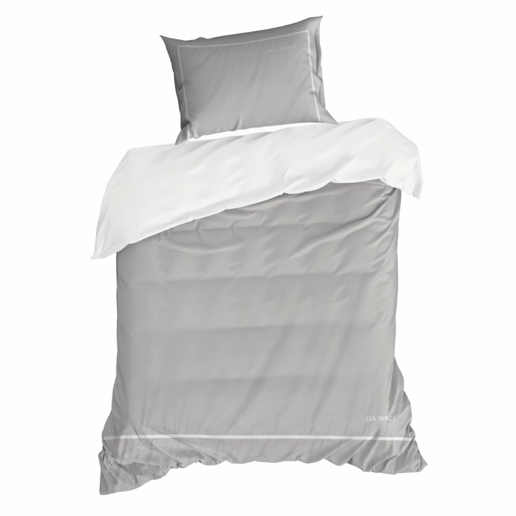 Sada exkluzivního designového povlečení z bavlněného saténu z kolekce Eva Minge. Zapínání na zip a precizní zpracování. Barva: šedá a bílá, gramáž: 125 GSM, šířka: 220 cm, délka: 200 cm, 2 ks povlaků na polštář 70x80 cm, složení: 100% bavlna.Doplňkové parametry