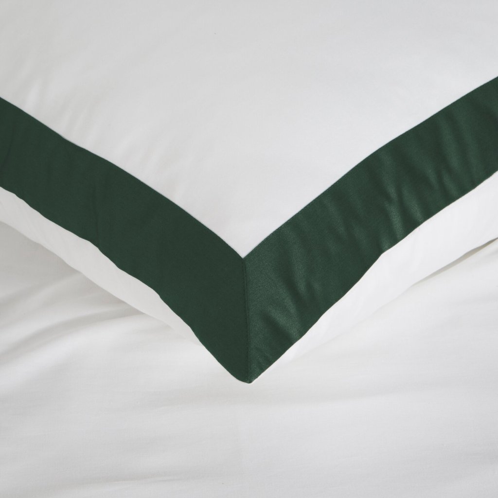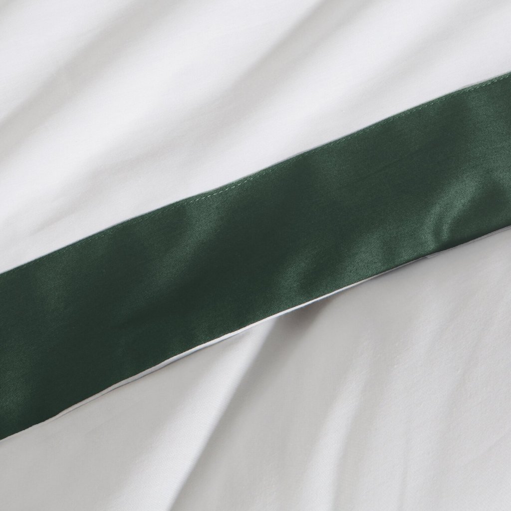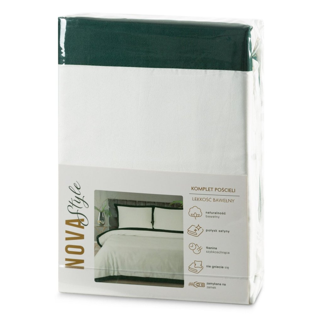 Saténové bavlněné povlečení s ozdobným barevným lemem, šířka: 160 cm, délka: 200 cm, povlaky na polštář: 2 ks 70x80 cm, barva: bílá a zelená, hmotnost: 125 GSM, složení: 55 % bavlna, 45 % polyester.Doplňkové parametry